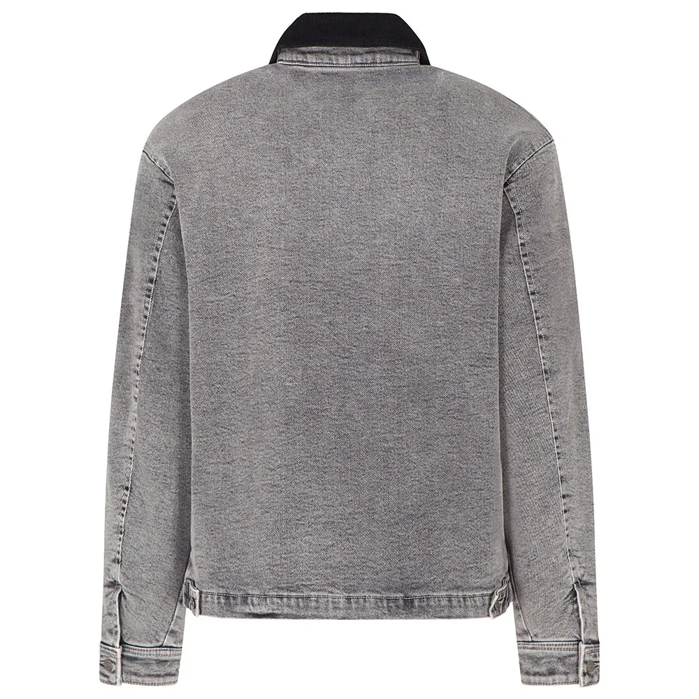 Джинсовая куртка-блузон на молнии, съемный вельветовый воротник, карманы на молнии и прорезные.