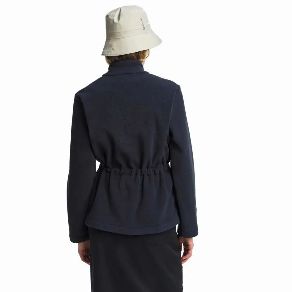 Для зимы мы разработали женственный флисовый жакет с округлым высоким воротником, заниженными плечами и контрастной планкой, прошитой строчкой. Регулируемый пояс с завязками обеспечивает удобную посадку, сочетая стиль и комфорт в течение сезона.