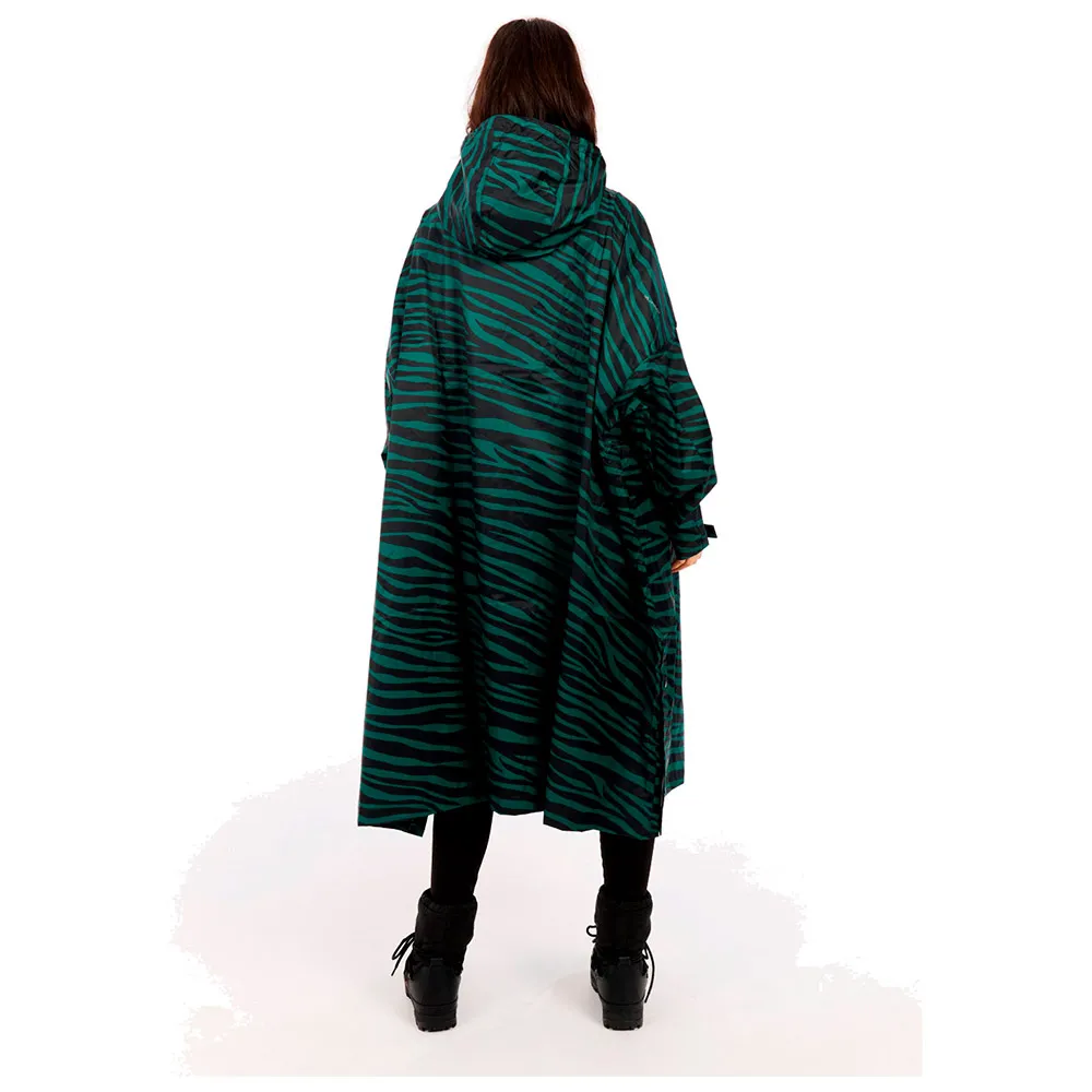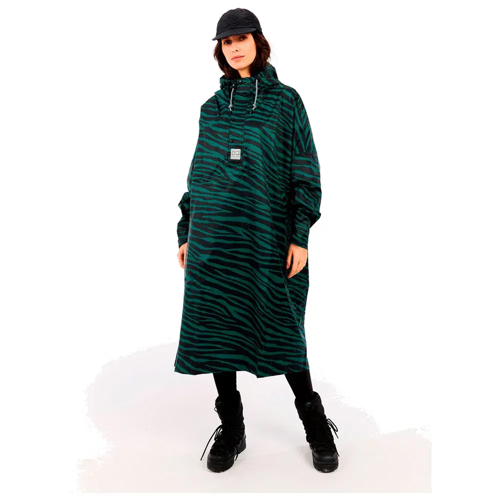 Изготовленный из полностью переработанного полиэстера, этот пончо обеспечивает водоотталкивающую защиту 10K и воздухопроницаемость, что делает его надежным выбором для дождливых походов или городских исследований.