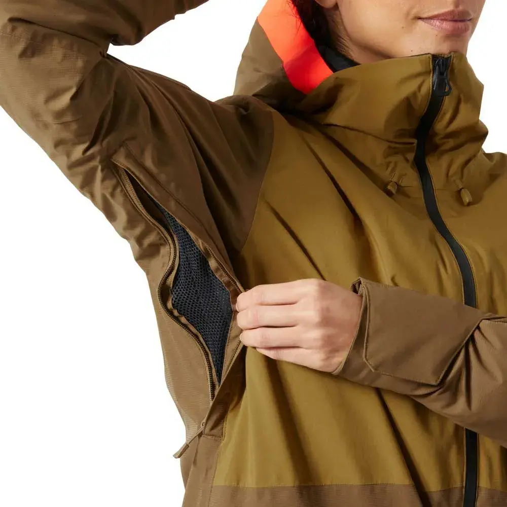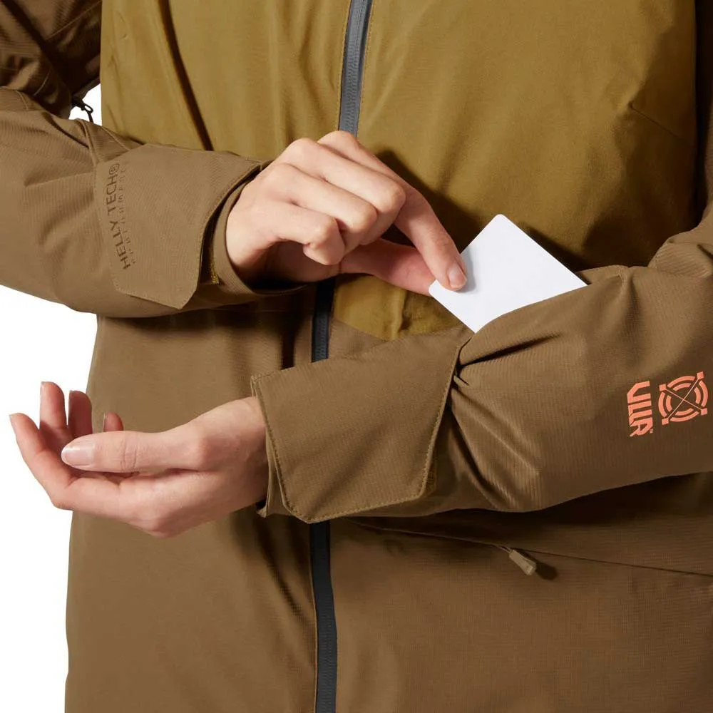 Женская горнолыжная куртка Powchaser 2.0 оснащена водонепроницаемой, дышащей и ветрозащитной технологией HELLY TECH Performance и легким, теплым утеплителем PrimaLoft Black Eco из переработанных материалов.