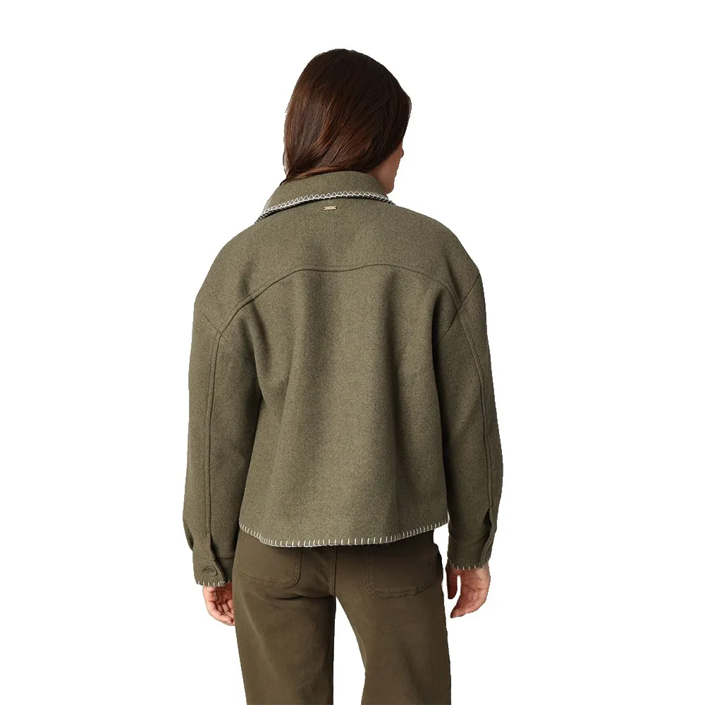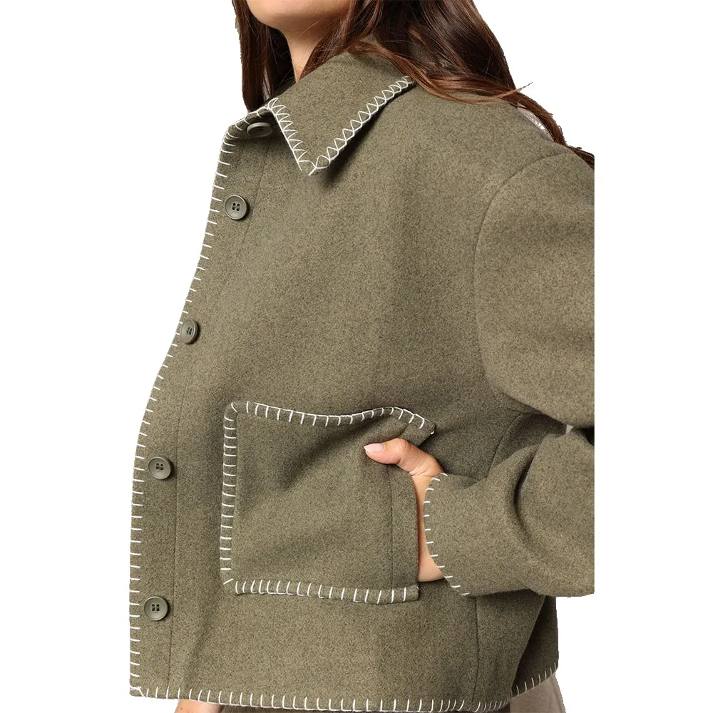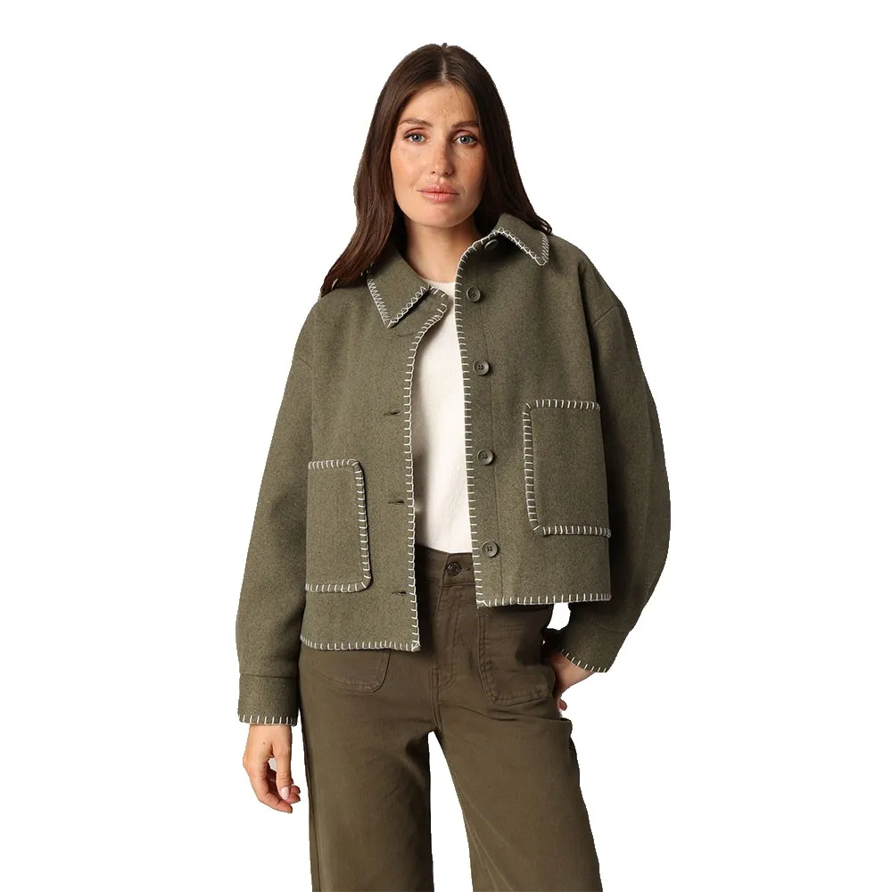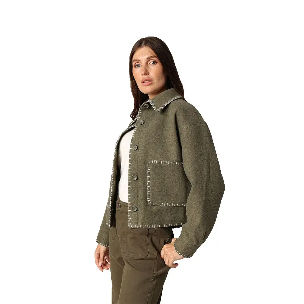 Женская куртка METZA, словно осенняя ласка на плечах.Мягкая шерстяная ткань с эффектом шелеста окутывает силуэт сдержанным теплом.Нарочито простой прямой крой подчеркивает благородную отделку: контрастную отстрочку верха, которая очерчивает воротник, рукава, накладные карманы и подол, словно стежки, выполненные вручную с течением времени.Воротник рубашки и застежка на пуговицы придают ей неподвластный времени шарм, идеально подходящий для прогулок по городу или спокойного утра.Предмет одежды, созданный в виде стихотворения, который можно носить каждый день.