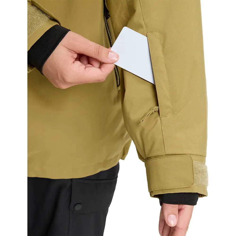 Карманы:2 кармана для рук на молнии с карабином для ключей, внутренний карман для медиаустройства и маски, карман для пропуска рукава.
