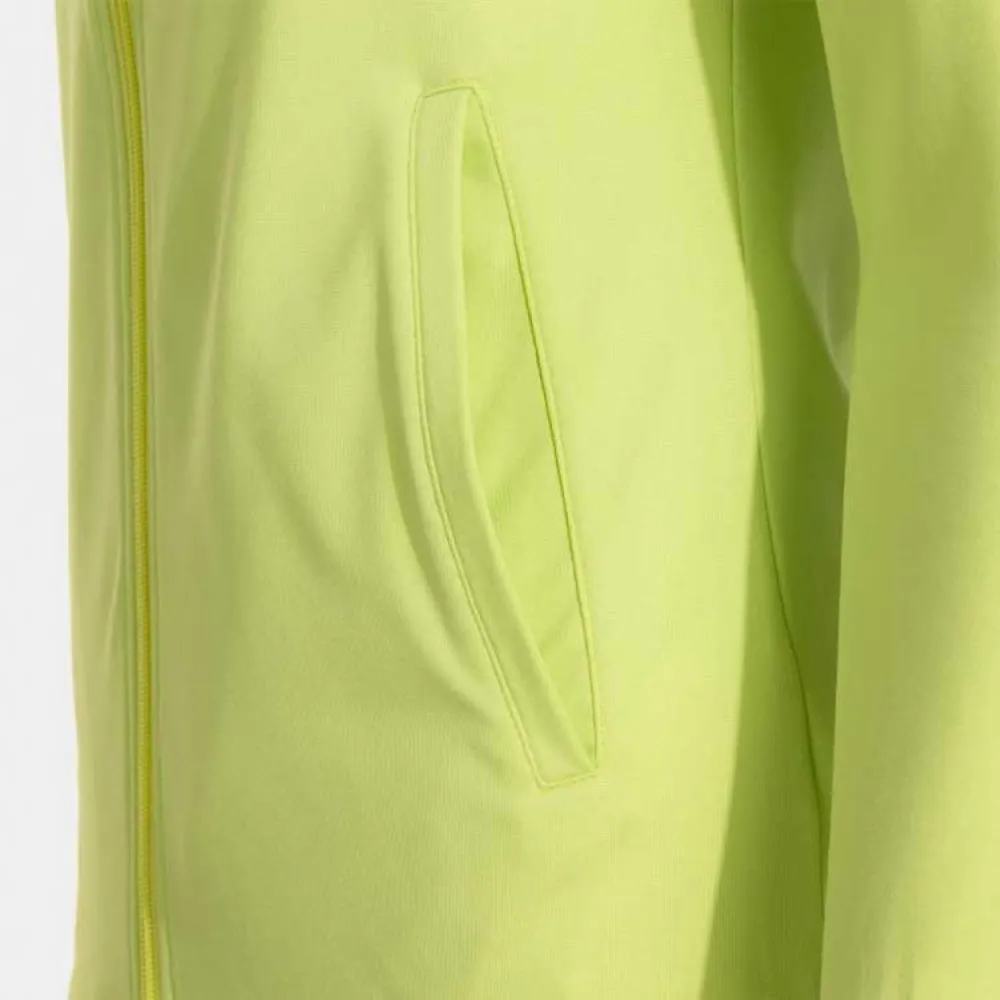 Он отличается базовым однотонным дизайном, который легко сочетается с другими предметами одежды. В младшие размеры не входят завязки. На этой куртке спереди также нанесен логотип Joma трафаретной печатью.