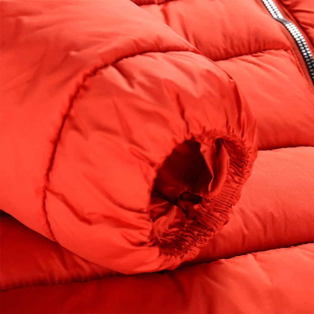 средняя степень утепления, классический крой, декоративная строчка, несъемный капюшон, всего 2 кармана, нашивка на рукаве.