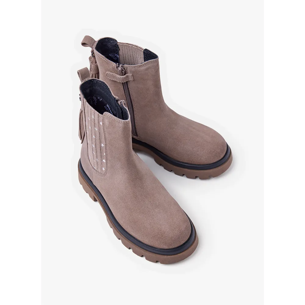 Замшевые ботинки "Челси" с металлическими звездочками и украшением кисточками.