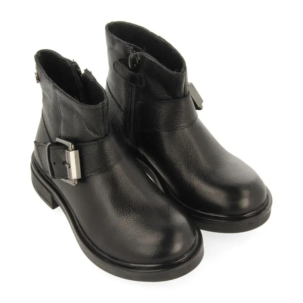 Идея! Черные ботинки в байкерском стиле с пряжками.