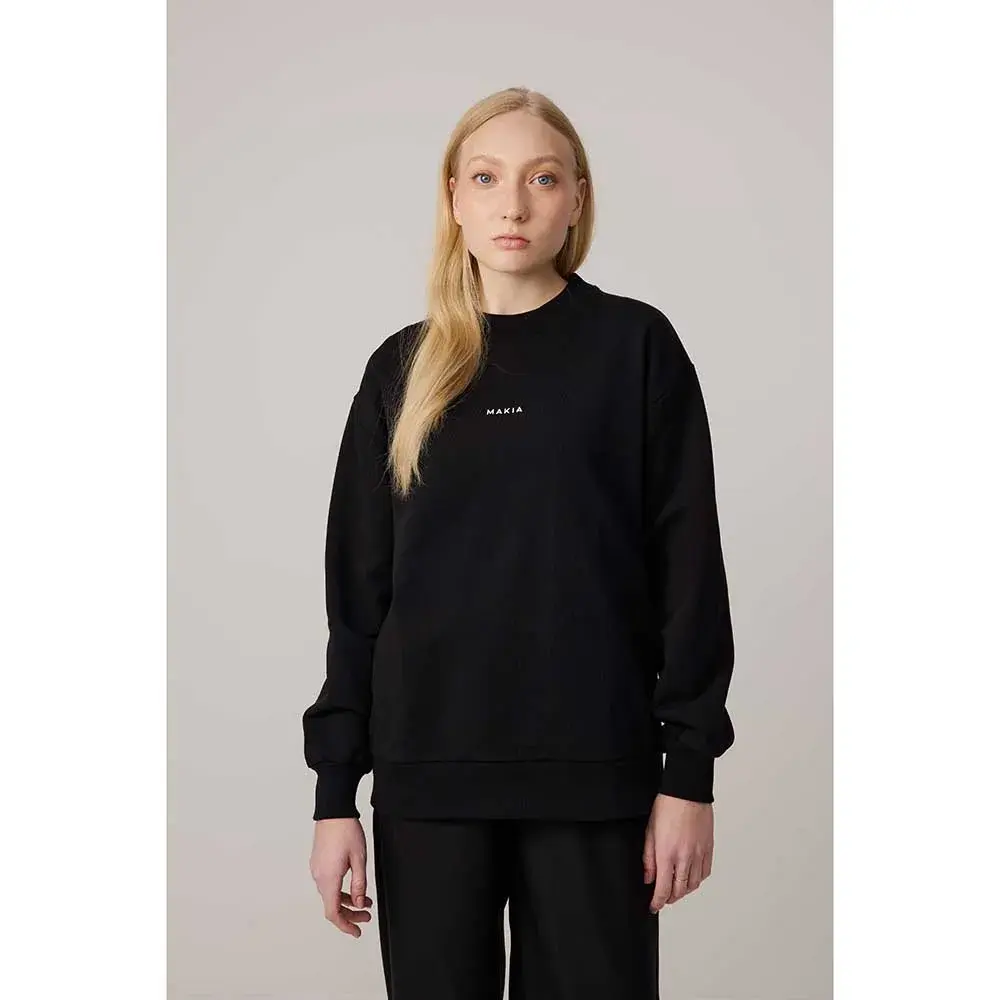 Классическая толстовка обычного кроя. Толстовка Makia с отделкой в рубчик на рукавах и подоле для придания дополнительной формы. Сшито из 100% органического хлопка и украшено тонкой надписью Makia на груди.