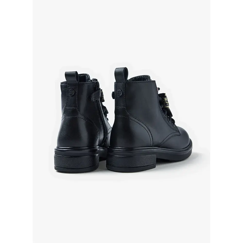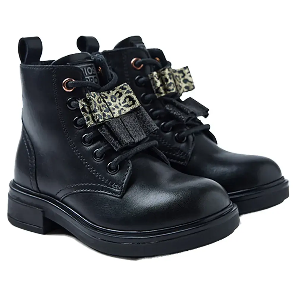 Кожаные ботинки с леопардовым принтом и съемным блестящим бантом.