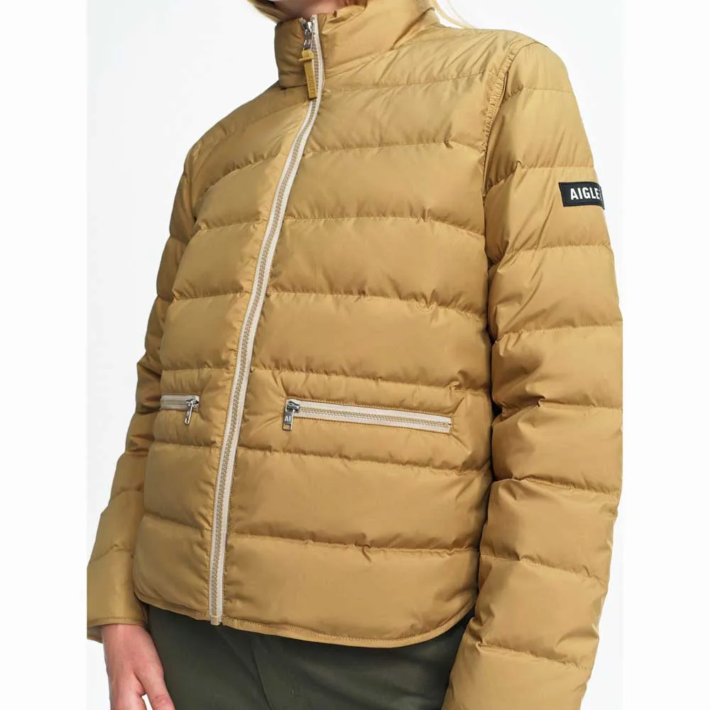 - Эта ткань обработана водоотталкивающим средством, так что вода с нее сразу стекает, что поможет вам оставаться сухими, если вы выйдете на улицу под умеренный, слабый дождь или морось. В Aigle каждый материал проходит испытания на предмет проверки его водоотталкивающих свойств.
