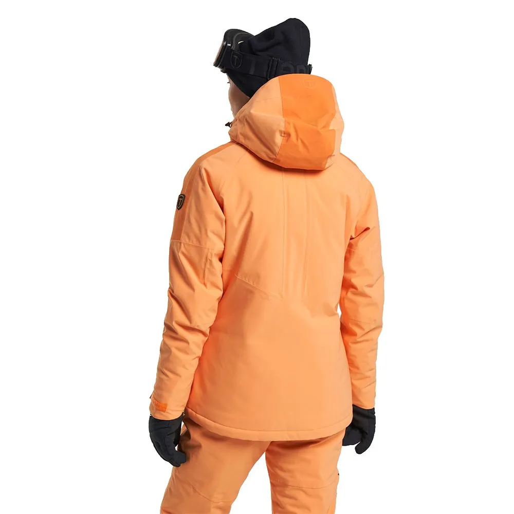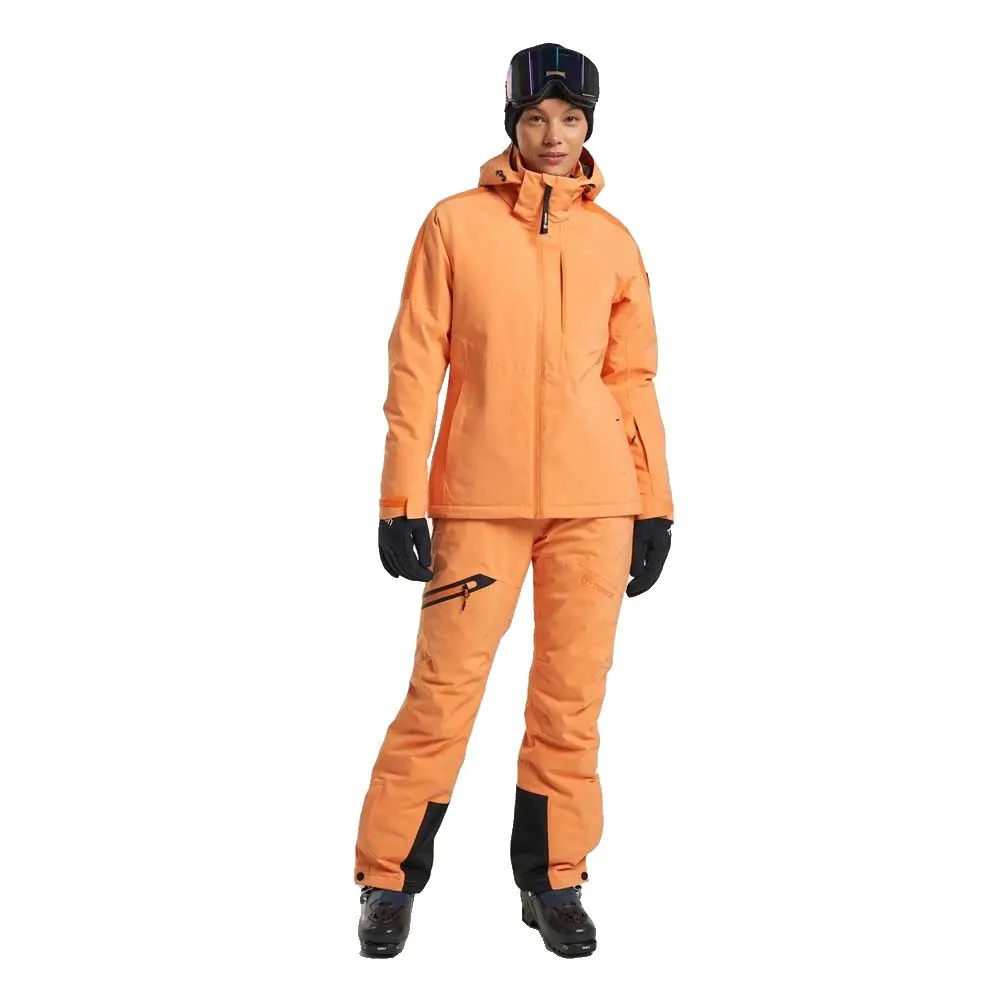 Внутренняя сторона воротника и карманов утеплена флисом. Два кармана на молнии, нагрудный карман на молнии и внутренний карман на молнии для безопасного хранения вещей. Рукава, капюшон и подол регулируются для идеальной посадки. Кроме того, куртка оснащена снежной юбкой для защиты от холода и снега. Подкладка из полиэстера E-dye с водоотталкивающей пропиткой без PFC.