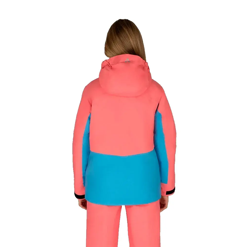 Куртка также оснащена вентиляционными молниями подмышек, фиксированными снегоотталкивающими гетрами, манжетами из лайкры и регулировкой рукавов на липучках для защиты от снега и сохранения тепла.