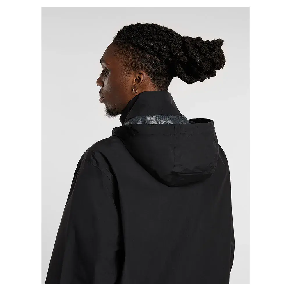 Для удобного хранения предусмотрены надежные, стратегически расположенные карманы. Благодаря надежным застежкам-молниям эти карманы обеспечивают безопасное и сухое место для ваших предметов первой необходимости, таких как смартфон, бумажник и ключи, гарантируя, что они защищены от влаги и всегда в пределах досягаемости. Обтекаемый дизайн дополнен аккуратным воротником-стойкой, создающим четкий профиль, который хорошо смотрится как сам по себе, так и в качестве многослойной детали. Отсутствие капюшона делает его идеальным выбором для тех, кто предпочитает менее громоздкий силуэт или для ношения под шлемом или водонепроницаемым панцирем большего размера.
