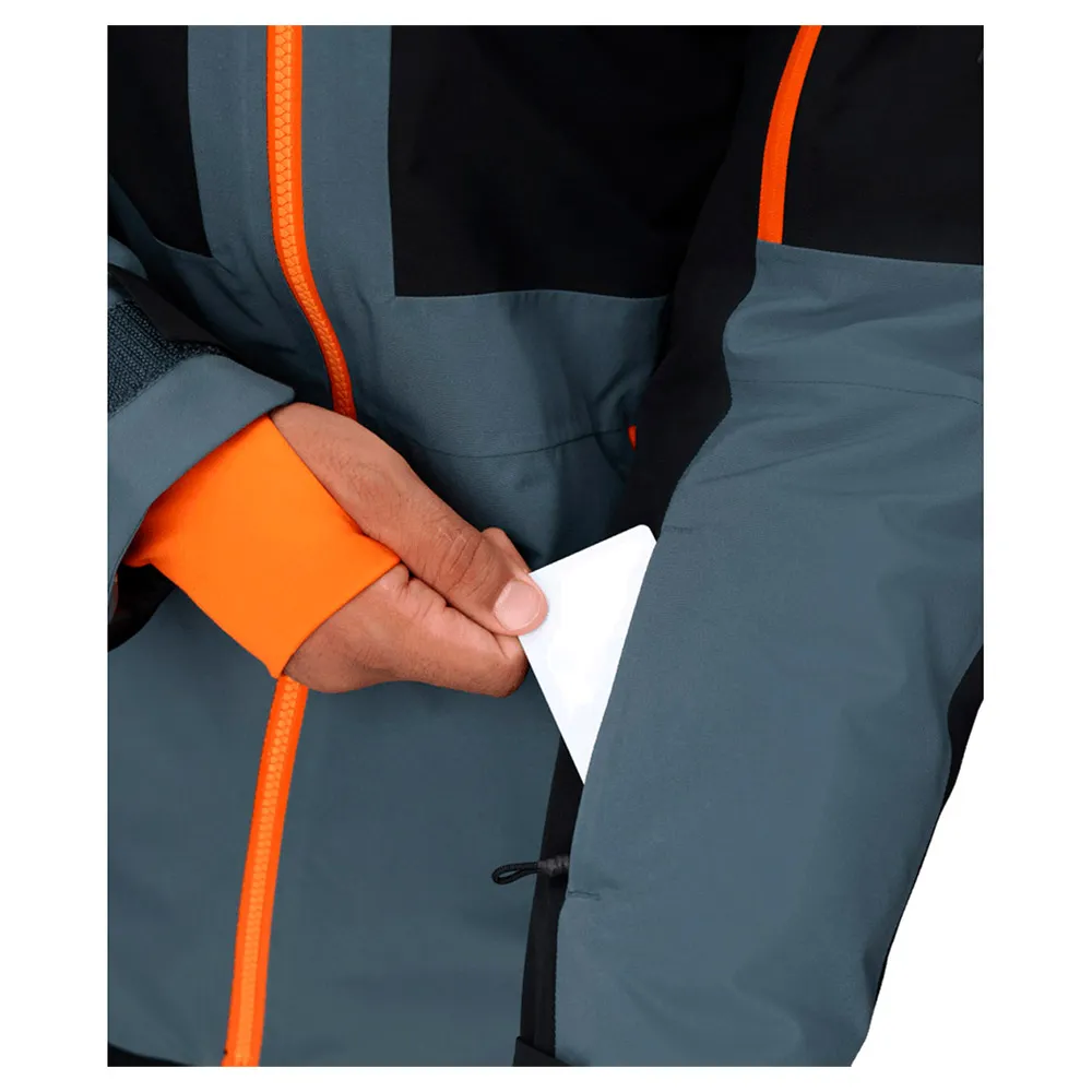 Также имеются такие детали, как совместимый со шлемом капюшон, карман на левом рукаве, встроенная салфетка для протирки линз и эластичные внутренние манжеты с отверстиями для больших пальцев.