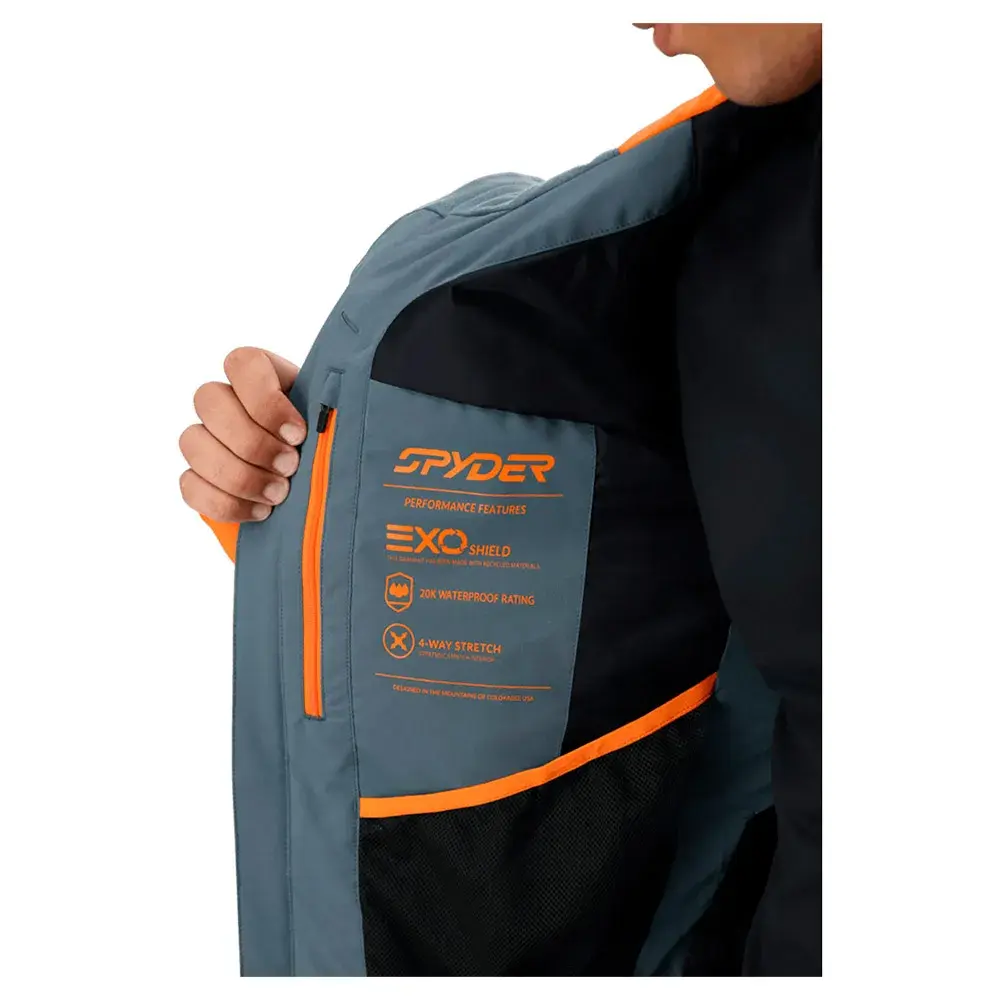 Она изготовлена из ткани EXO SHIELD 20K, растягивающейся в 4 стороны, с утеплителем SoronaВ (80 грамм) и молниями YKKВ AquaGuardВ, а также имеет множество премиальных функций Spyder.