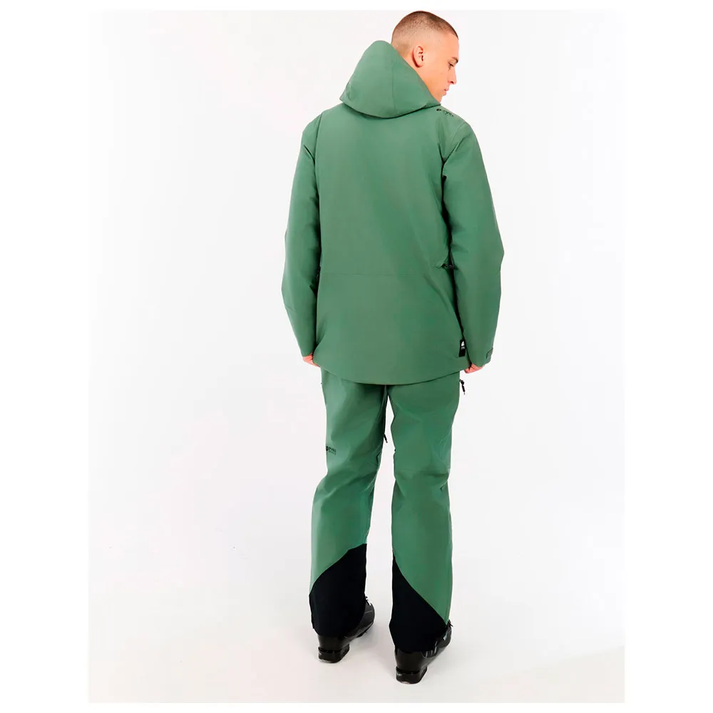 Водоотталкивающие молнии и полностью проклеенные швы PRTDUTY не пропускают воду, а фиксированный капюшон, совместимый со шлемом, и высокий воротник защищают от ветра, снега и дождя.