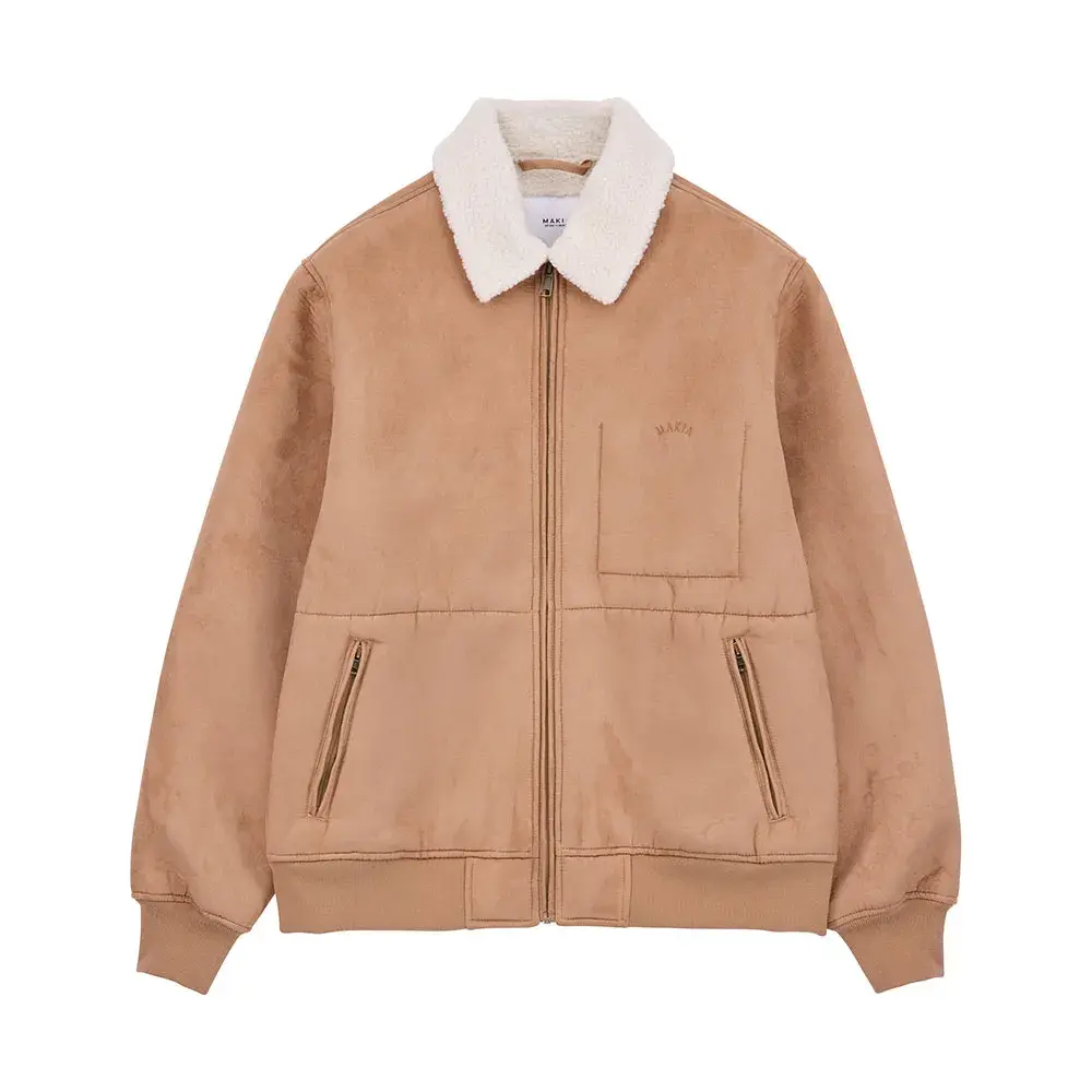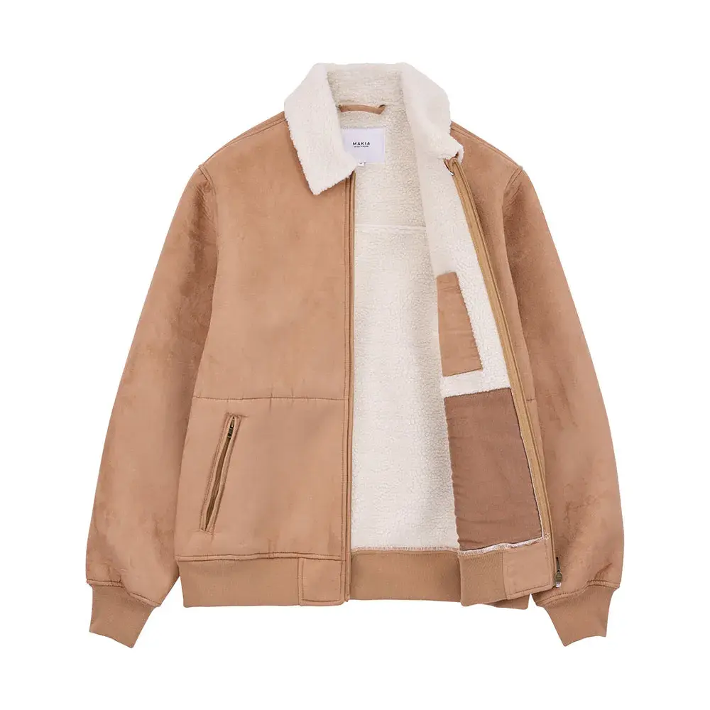 Авторская куртка из ткани-ракушки, похожей на замшу, с отложным воротником.