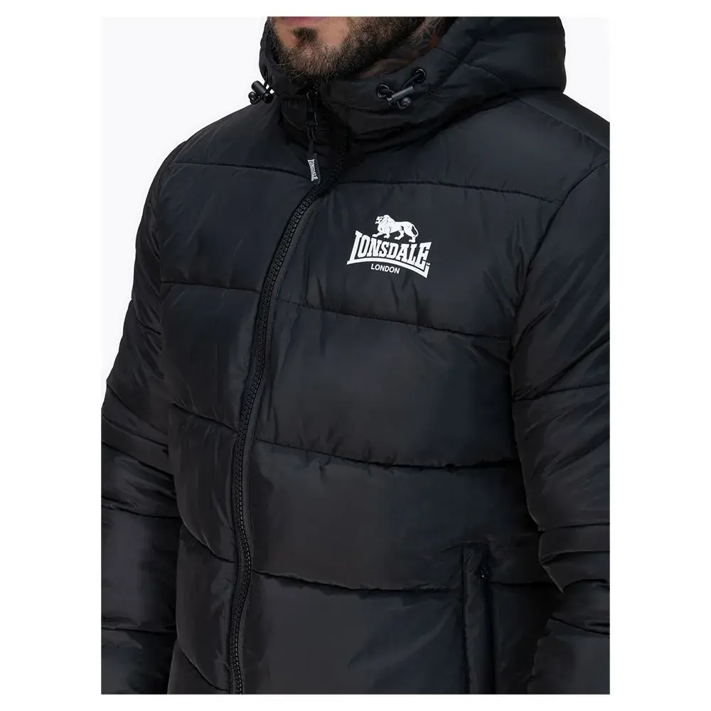 Куртка с капюшоном на молнии и двумя карманами спереди. На груди небольшой логотип бренда, а сзади - крупный логотип.
