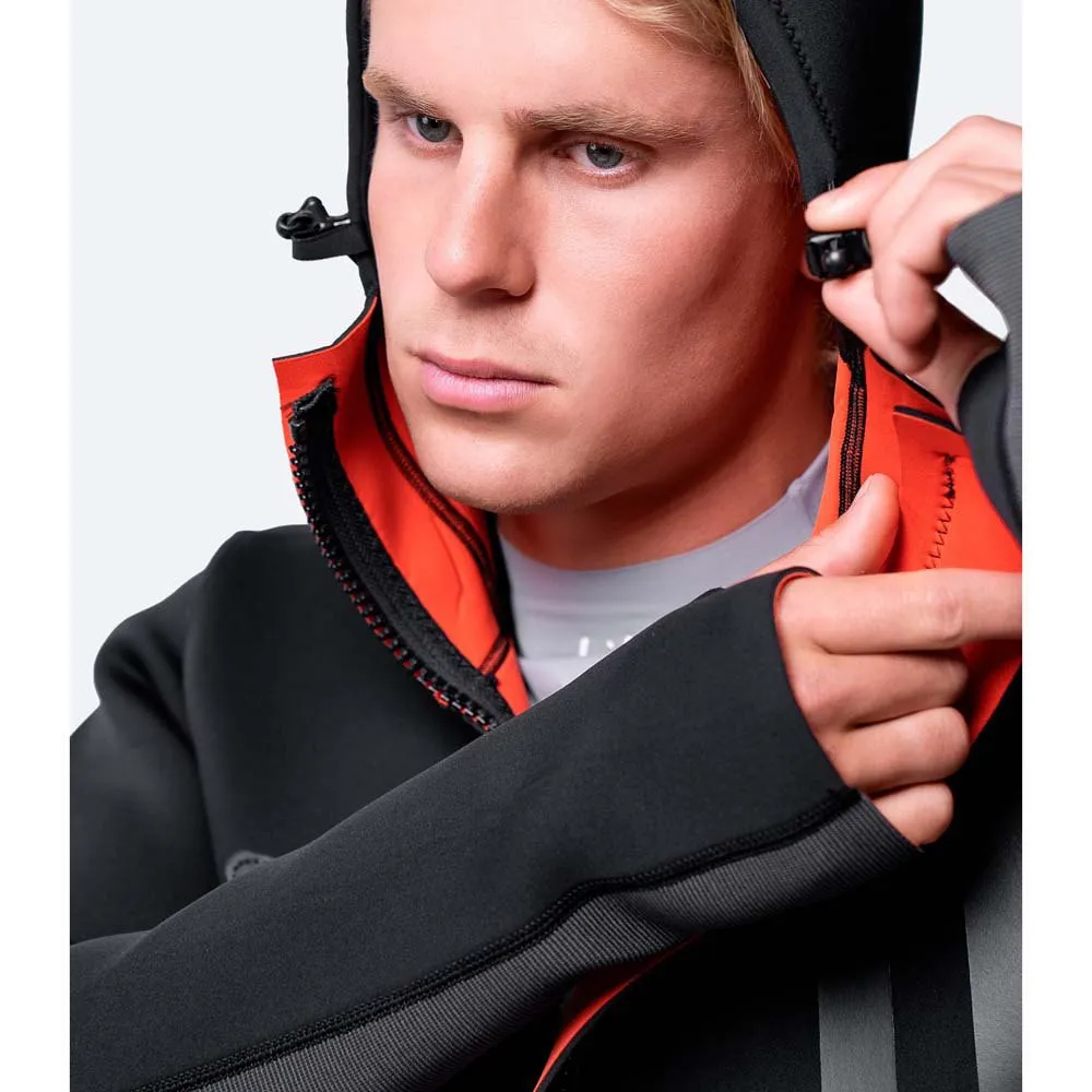 Конструкция капюшона с фиксатором головы, ветрозащитной ластовицей и 3-точечной системой регулировки.