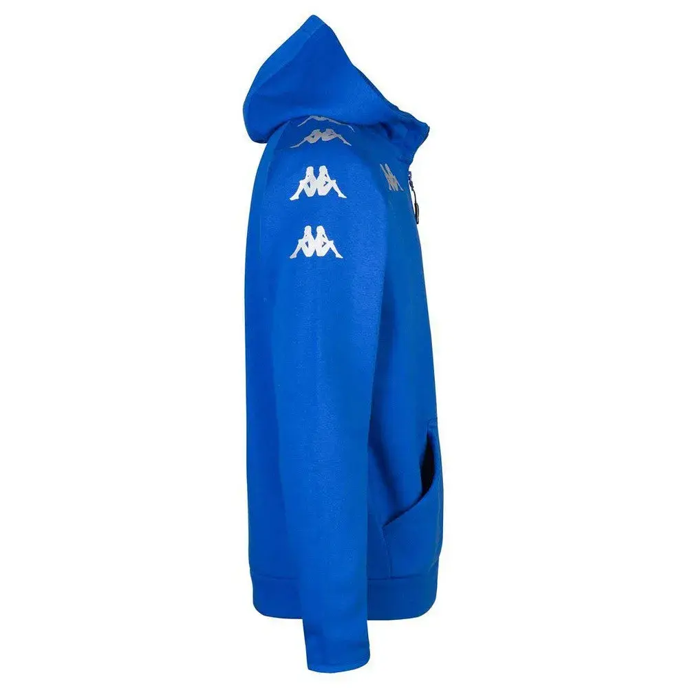 Теплая и удобная куртка с капюшоном, застегивающаяся на молнию, передними карманами и каппа-лентой на рукавах.