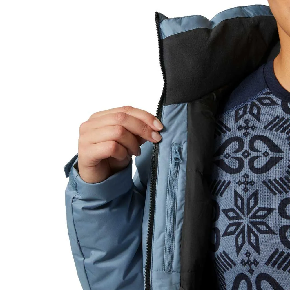Другие удобные особенности для лыж включают регулируемую юбку для защиты от снега, нагрудный карман с салфеткой для очков и карман LIFE POCKET, который помогает продлить срок службы аккумулятора мобильного телефона в холодную погоду.
