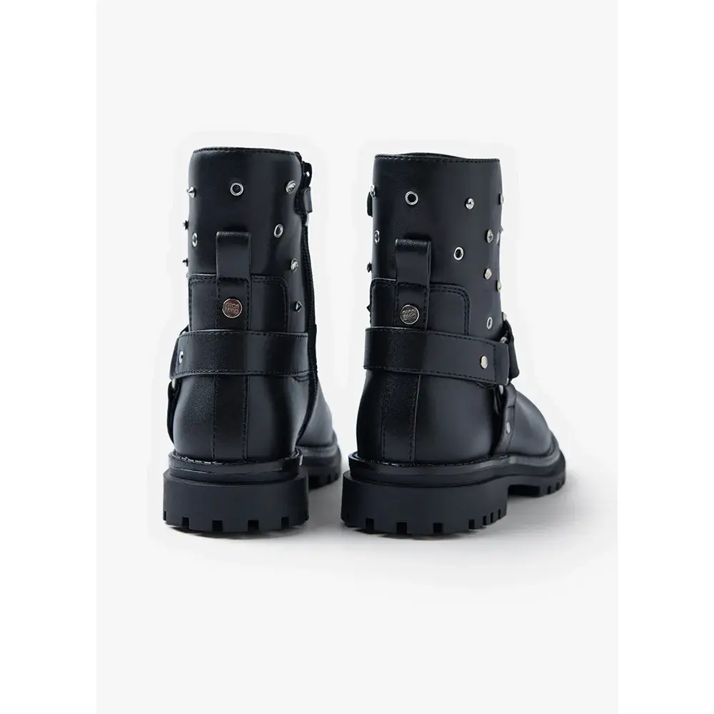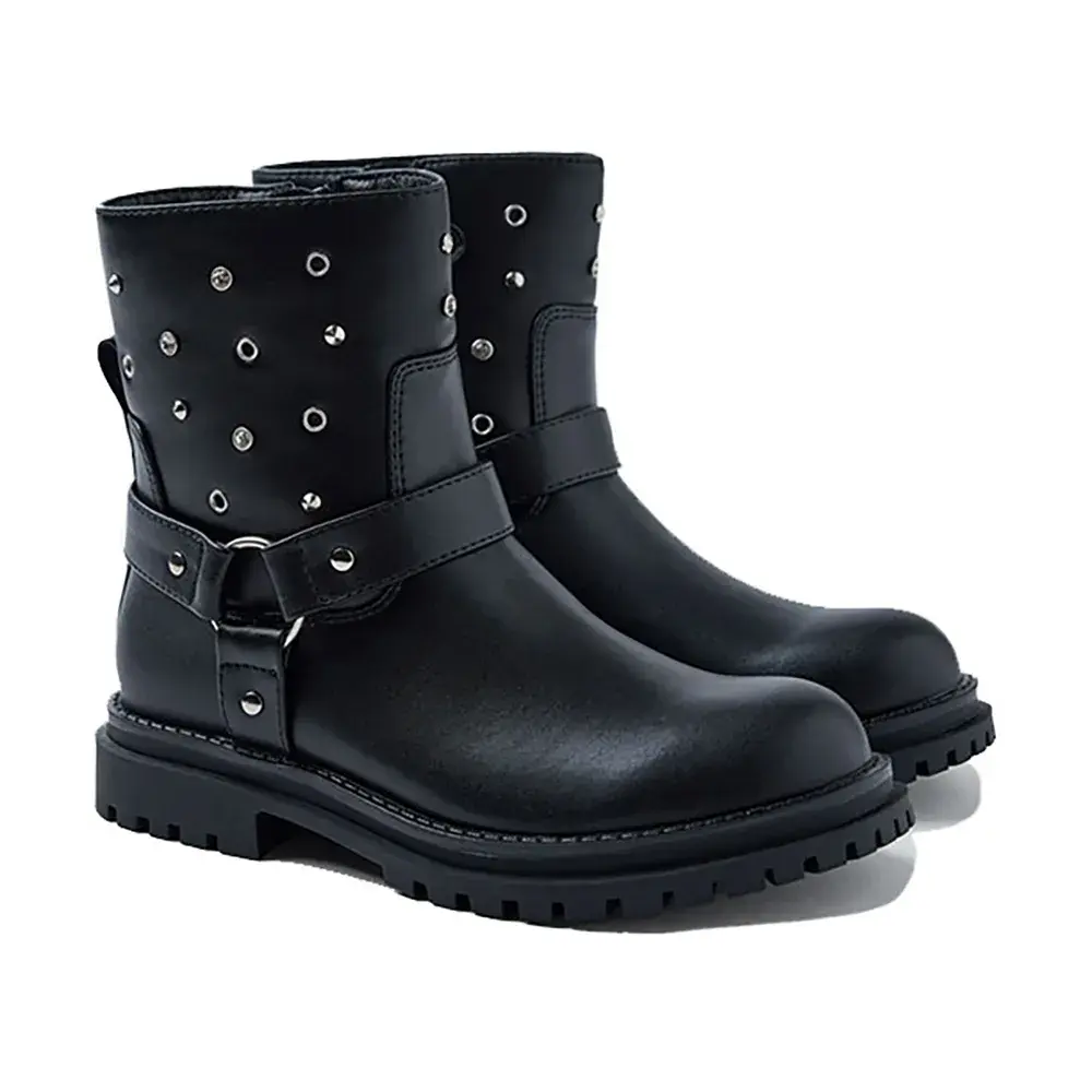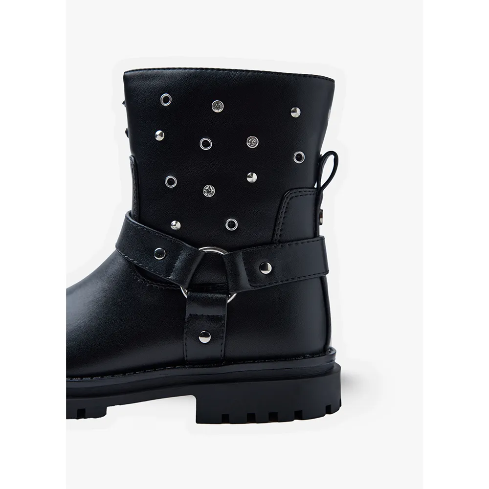Мягкие на ощупь ботинки с заклепками, проушинами и стразами.
