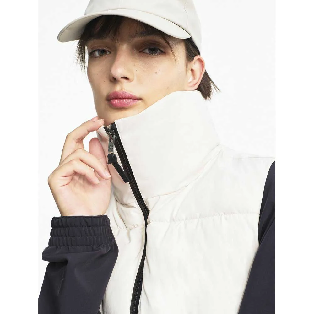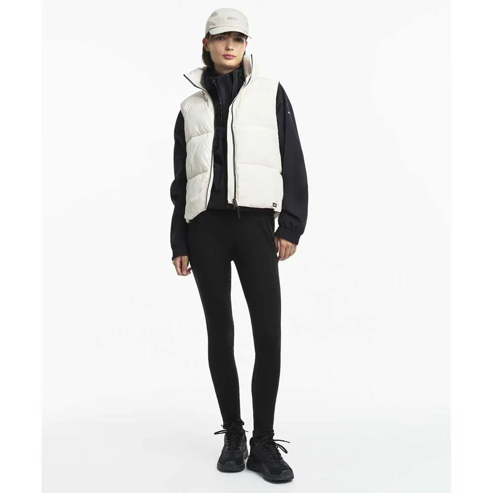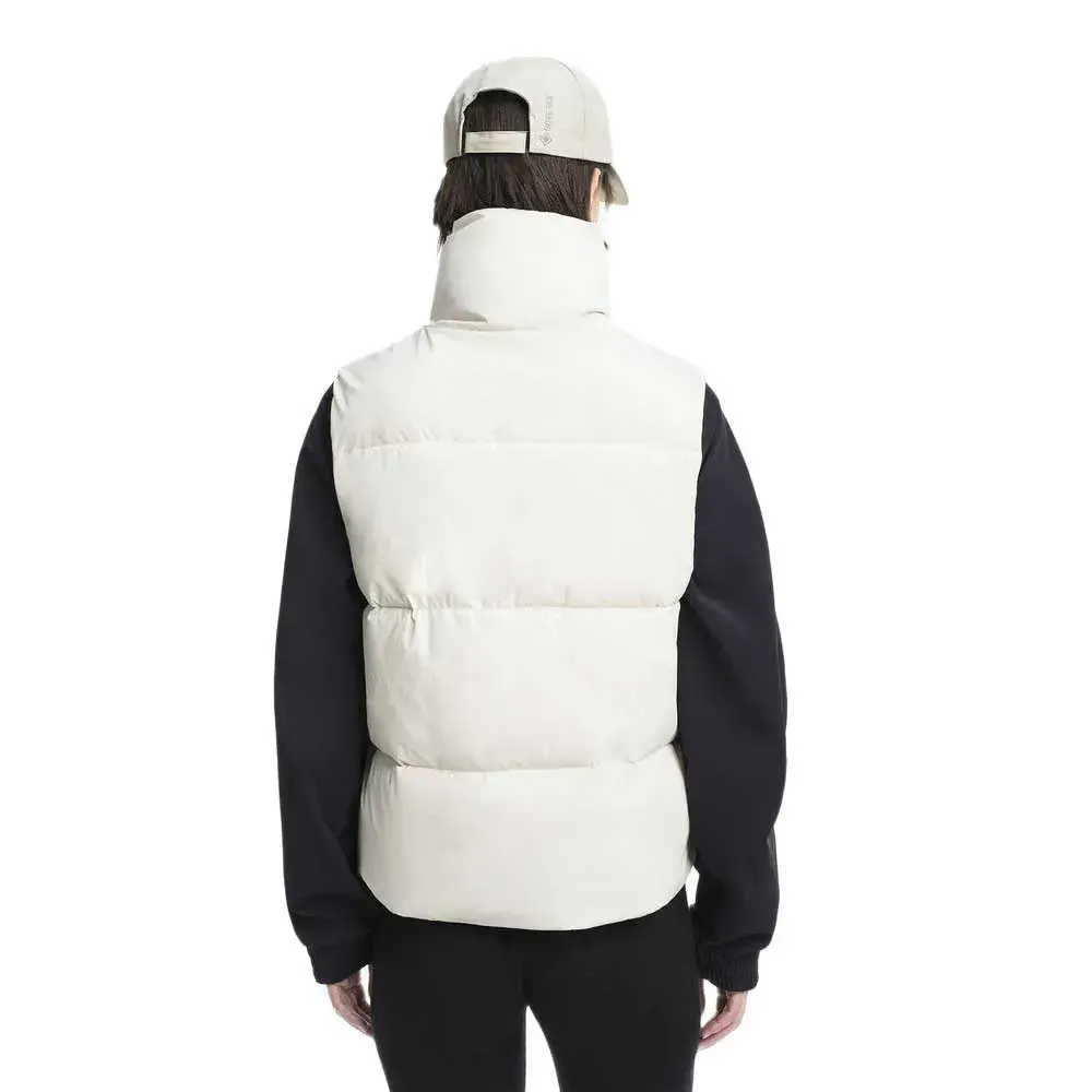 Наш водоотталкивающий пуховик без рукавов с высоким воротником, наполненный переработанными волокнами, сохранит тепло с начала сезона до зимы. Боковые разрезы обеспечивают комфорт и воздухопроницаемость, что делает его идеальным многослойным изделием для ношения в течение всего дня.