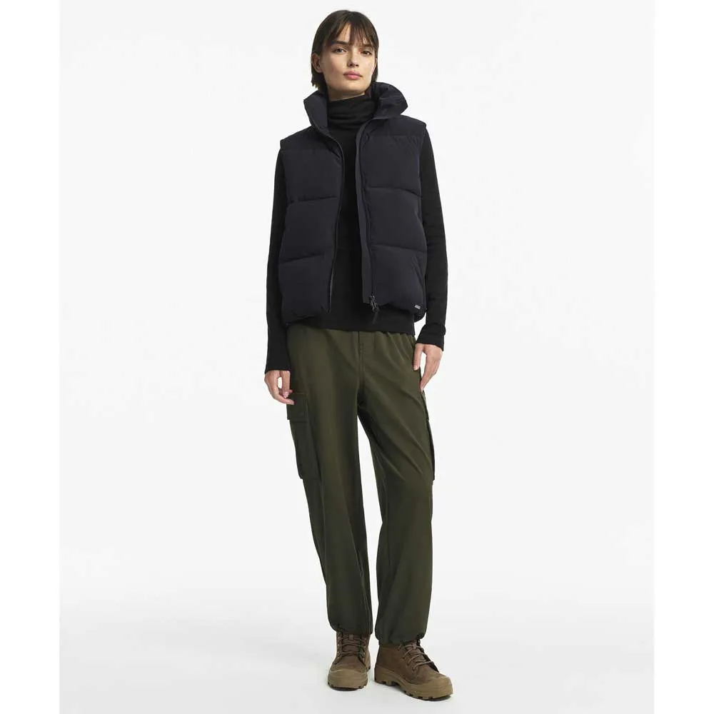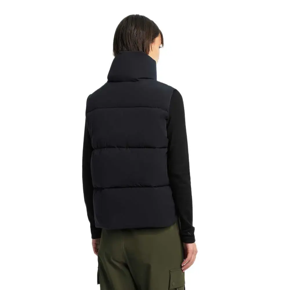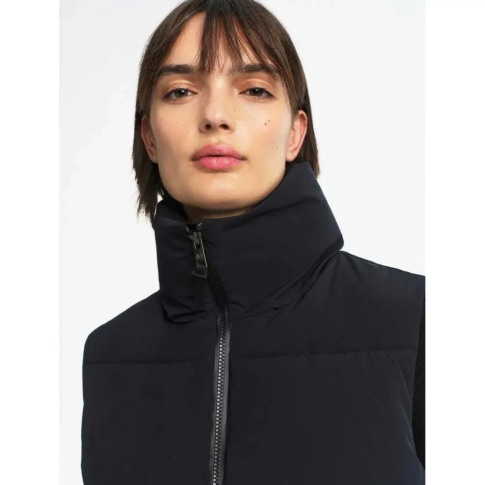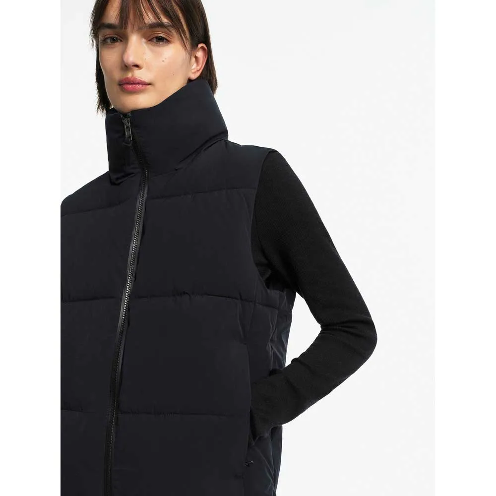 Наш водоотталкивающий пуховик без рукавов с высоким воротником, наполненный переработанными волокнами, сохранит тепло с начала сезона до зимы. Боковые разрезы обеспечивают комфорт и воздухопроницаемость, что делает его идеальным многослойным изделием для ношения в течение всего дня.
