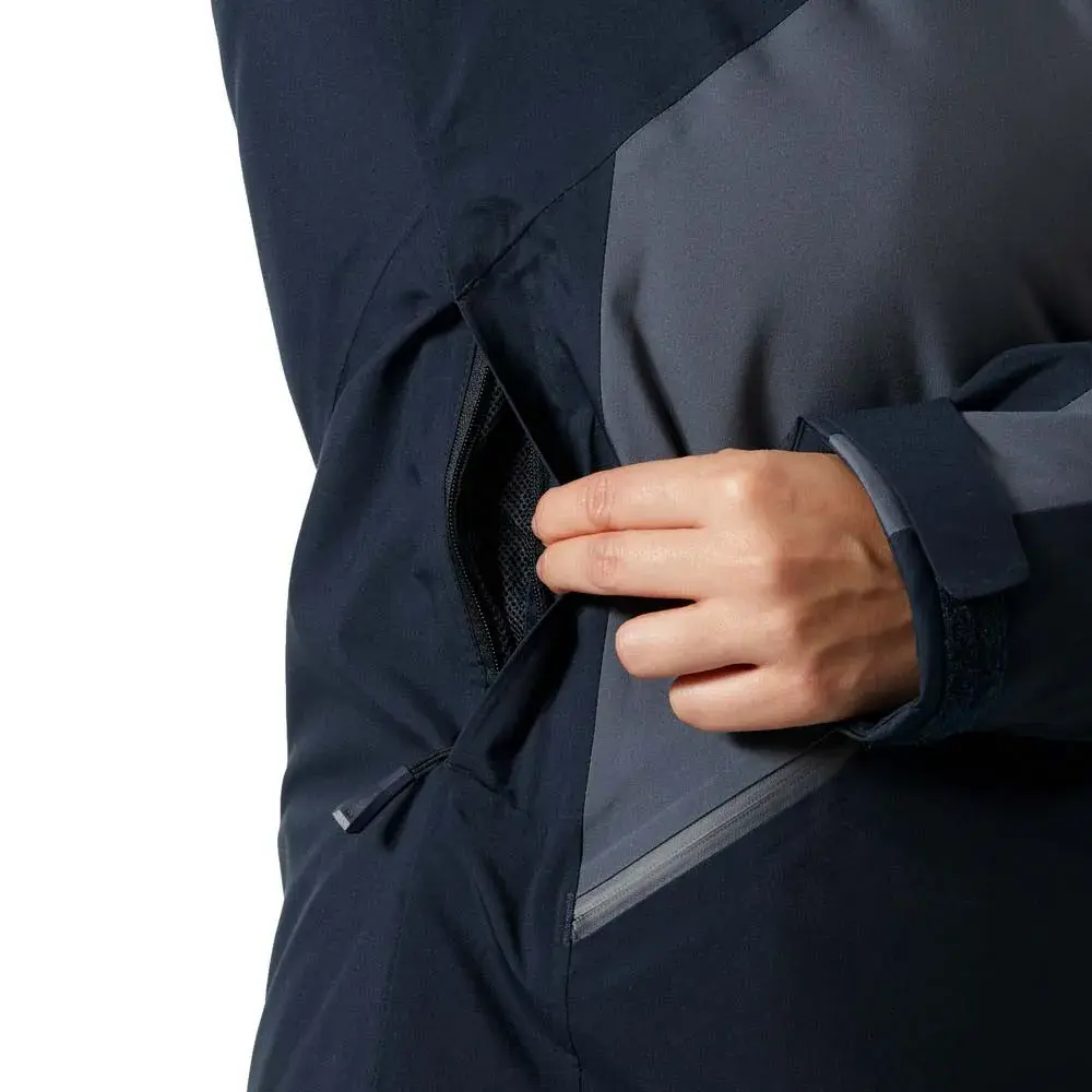 Продуманные детали, такие как гетры на запястьях, молнии для вентиляции под мышками и капюшон, совместимый со шлемом, повышают комфорт и функциональность.