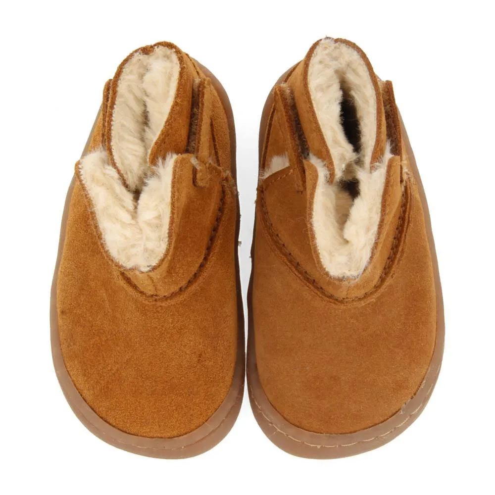 Кожаные ботильоны с регулируемой застежкой без анатомических элементов, которые могли бы препятствовать оптимальному развитию стопы.