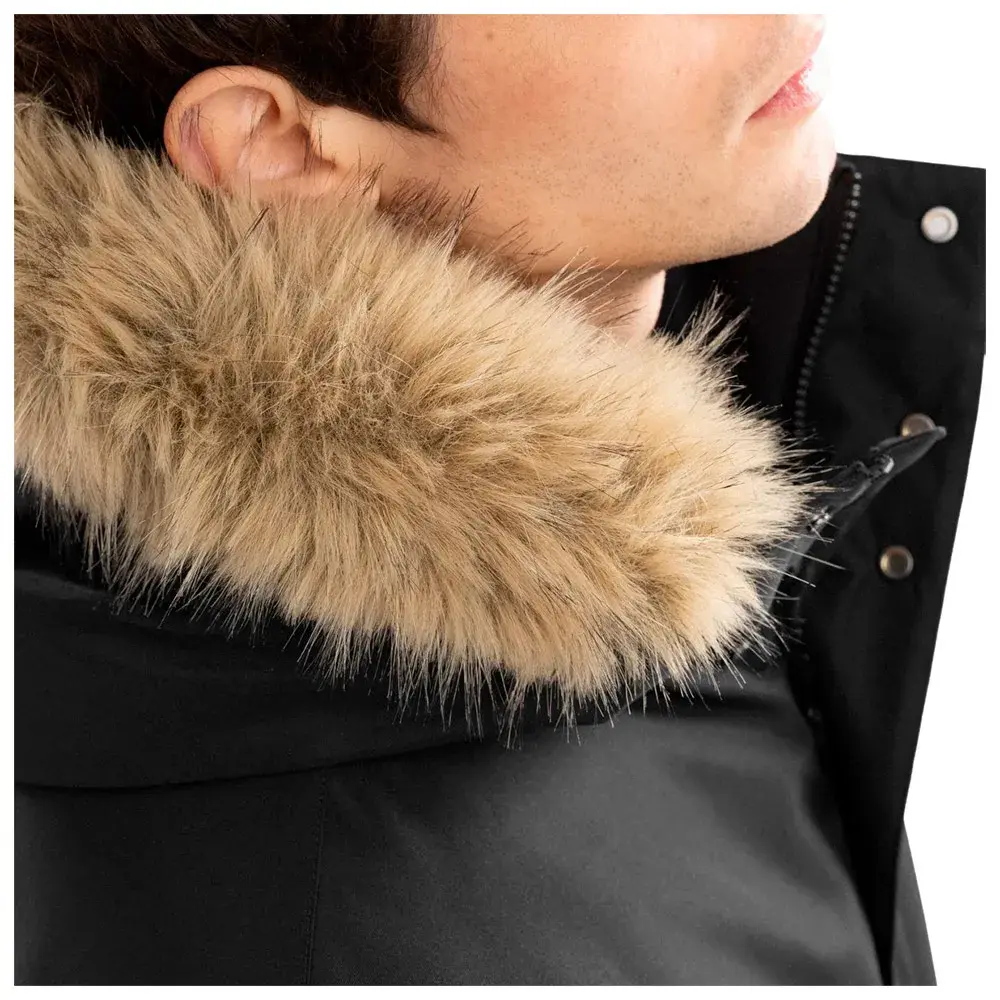 Большой капюшон с отделкой из искусственного меха и тремя карманами.