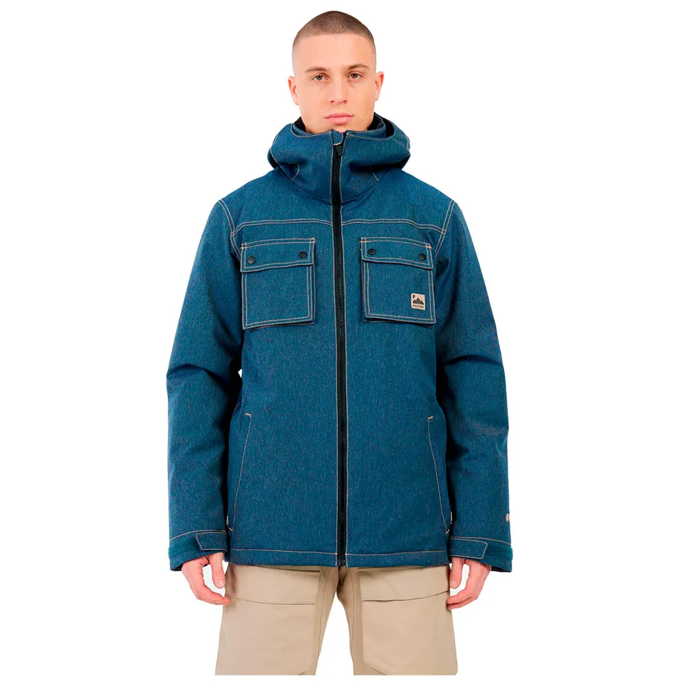 Эстетика в стиле денима и функциональные особенности, такие как водоотталкивающая пропитка 10K, дышащее покрытие 10g, молнии под мышками и высокий воротник, делают ее идеальной для катания и прогулок.