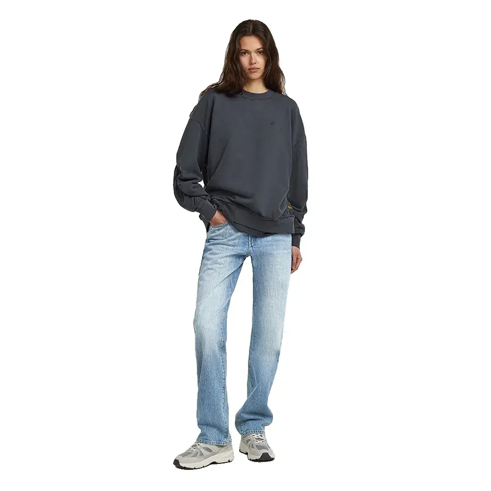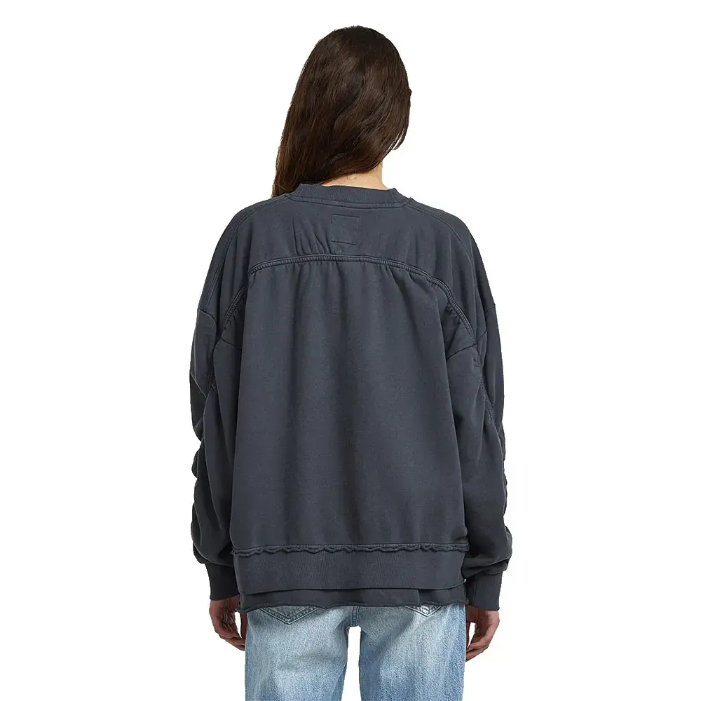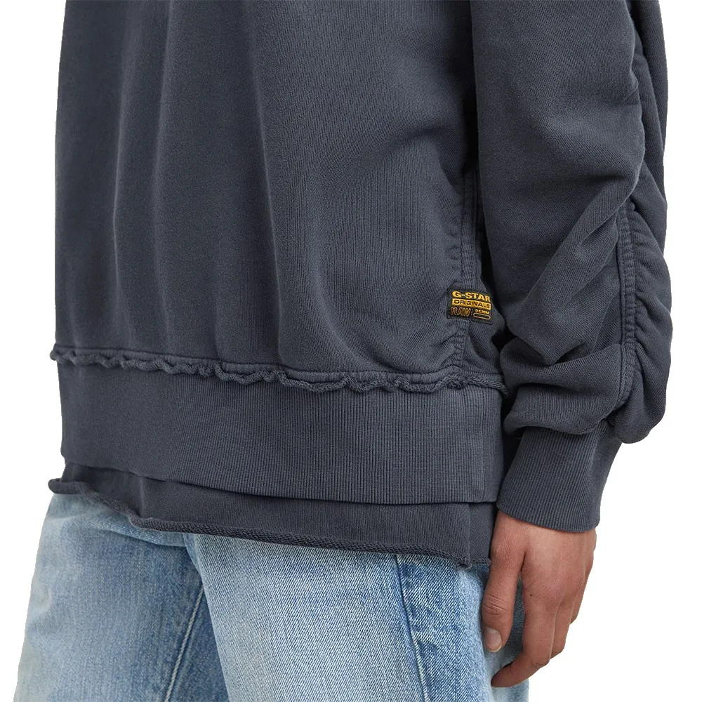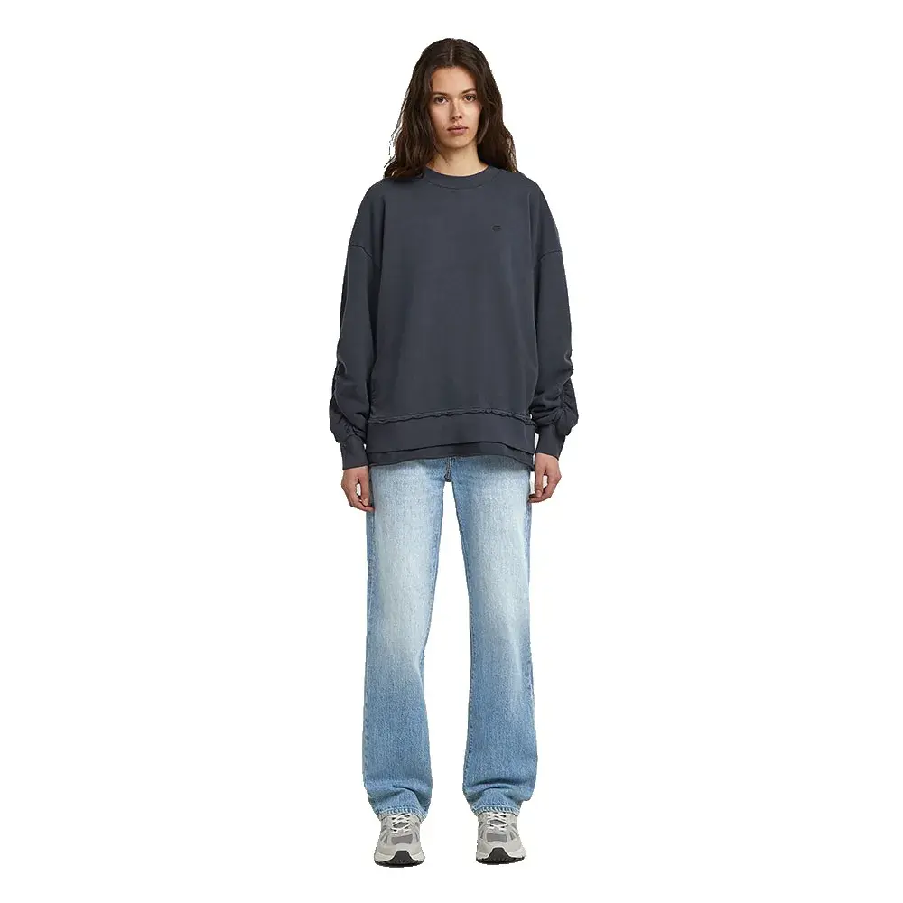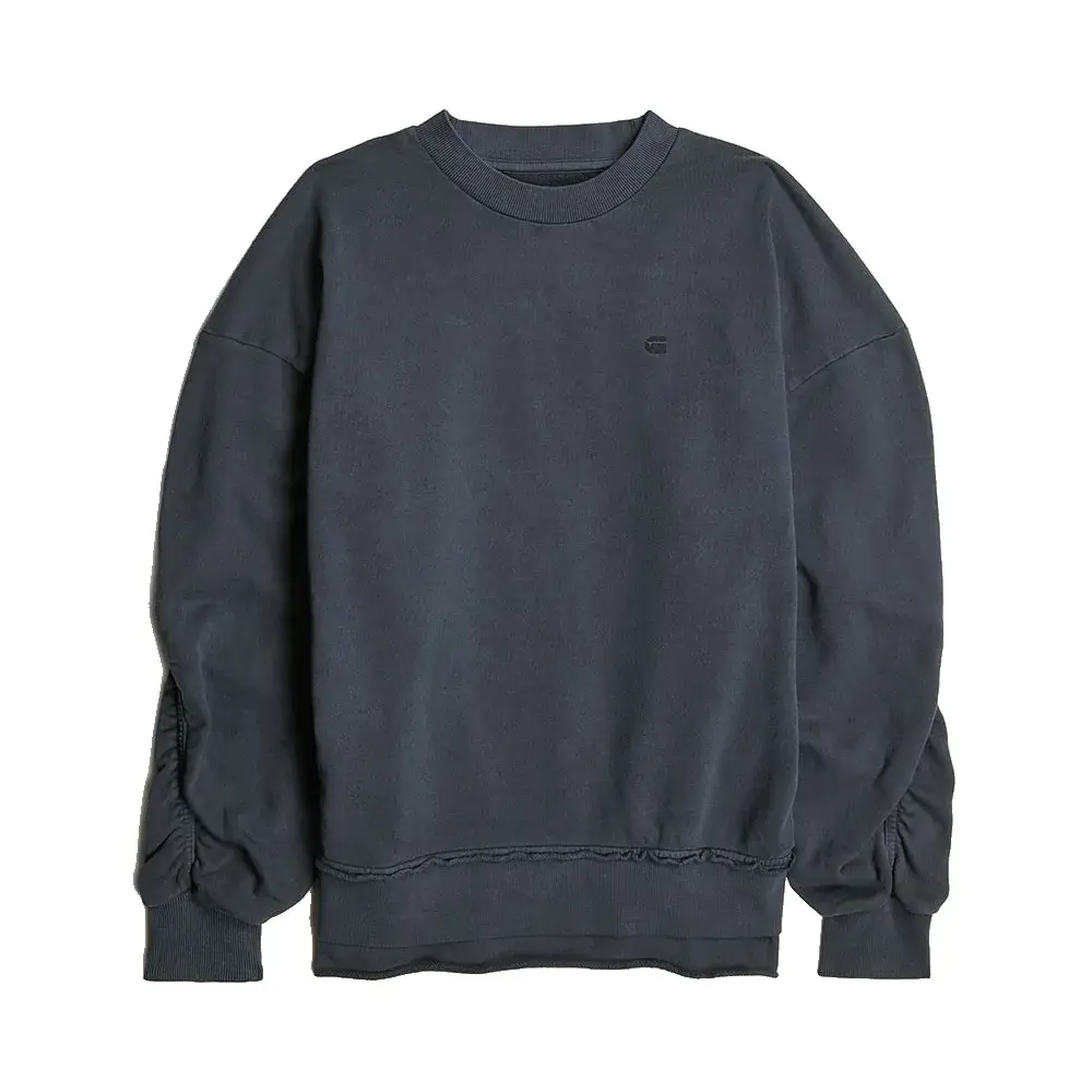 Свитер в складку свободного кроя, укороченной длины, представляющий современный и универсальный стиль. Круглый вырез и длинные рукава придают ему повседневный вид.