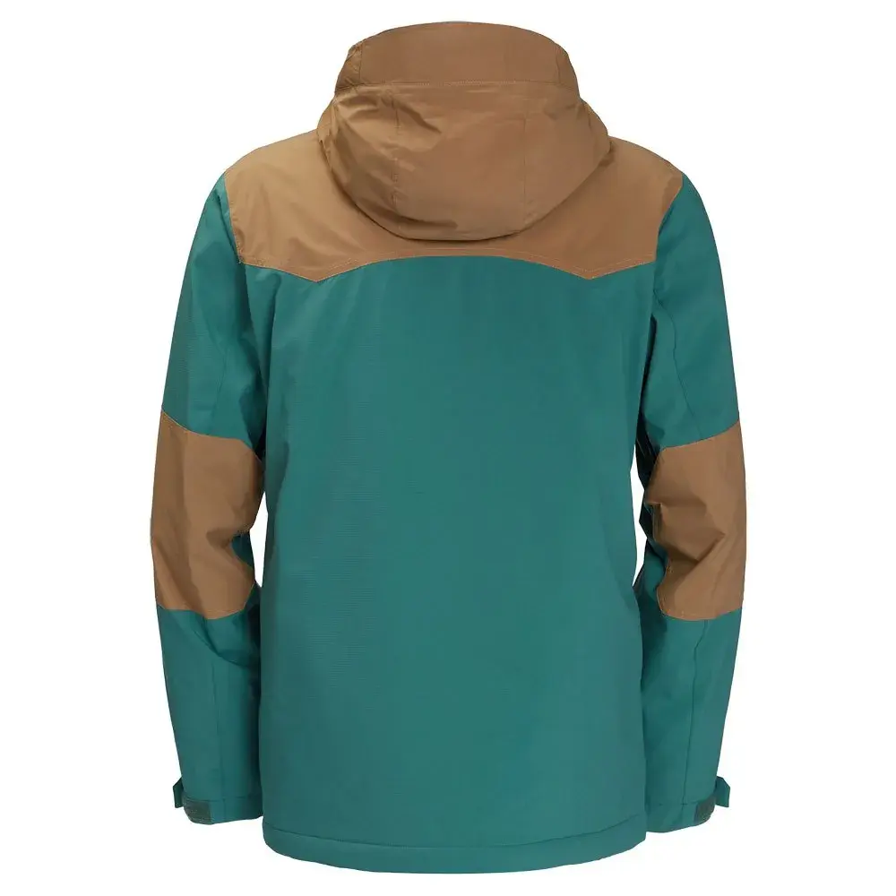 Полностью регулируемый капюшон с затяжкой спереди и сзади, Встроенный козырек, Подъемный воротник, Скрытая застежка-молния спереди, Ветрозащитный клапан с кнопками, Длинные рукава, Сетчатая подмышка Вентиляция, гетры из лайкры на манжетах, скрытый утягивающий пояс, съемная эластичная водонепроницаемая юбка для защиты от снежного покрова, соединения куртки с брюками, карабин для ключей, салфетка для протирки очков, фирменная нашивка с логотипом Billabong на левом кармане, отделка Adventure Division Collection по всему изделию.