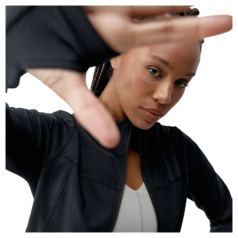 Центральная молния и петля для пальцев на манжете для лучшей посадки.