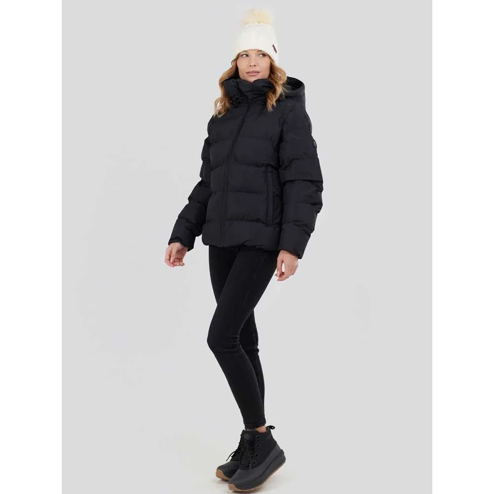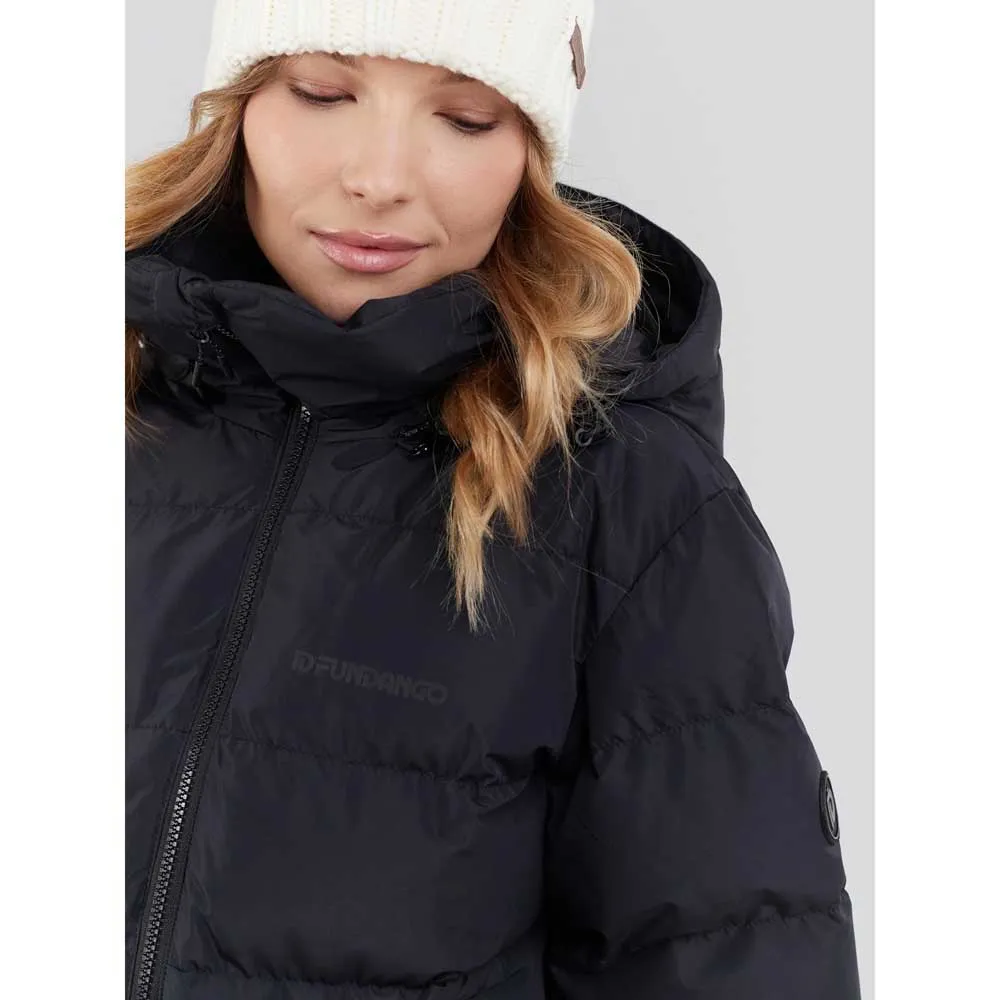 Спортивная стеганая женская зимняя куртка Fundango Amber Padded Jacket оснащена съемным капюшоном, регулируемым шнурком, и регулируемым шнурком по низу куртки для защиты от холодного ветра. Основная застежка на молнию позволяет легко надевать куртку и регулировать теплоотдачу. Удобный свободный крой обеспечивает максимальную свободу движений и позволяет комбинировать одежду с другими слоями. Эластичные манжеты плотно облегают запястья, сохраняя руки в тепле, не стесняя движений и предотвращая закатывание рукавов. Передние карманы на молнии и внутренний карман позволяют удобно разместить все необходимые вещи. Утеплитель DupontВґs Sorona сохраняет тепло в неблагоприятных погодных условиях, не ухудшая вентиляцию. Он помогает сохранять тепло, вырабатываемое телом, и предотвращает потерю тепла, обеспечивая комфорт в самые холодные условия.