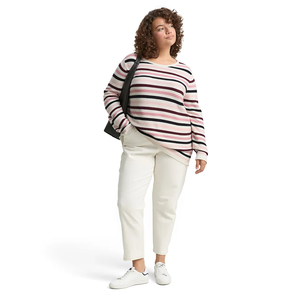 Структурированный джемпер-пуфик с вырезом лодочкой и слегка закатанными краями подола.