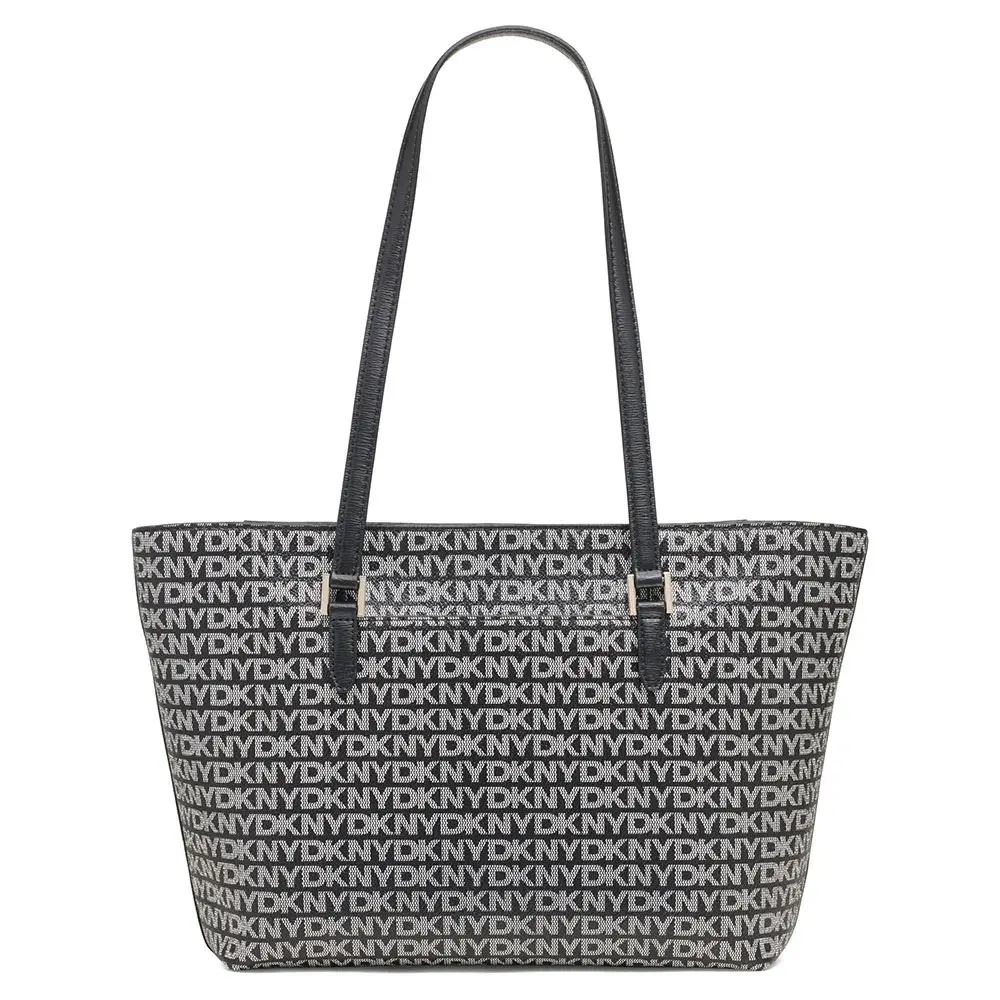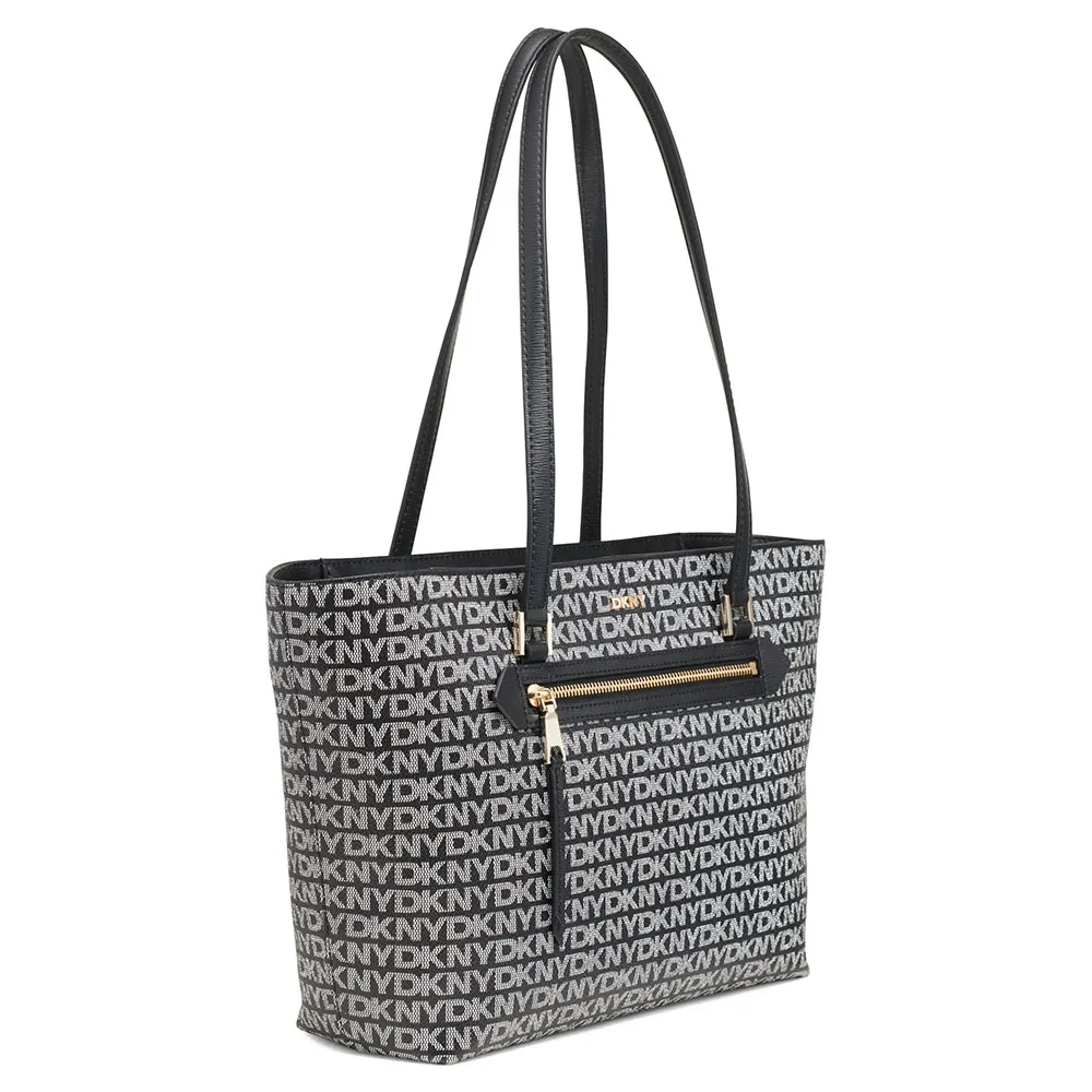 Сумка-тоут Bryant Ave MD отличается ярким и мгновенно узнаваемым дизайном. Это сумка-тоут с монограммой - культовым рисунком, который говорит о богатом наследии и современном видении DKNY. Дизайн логотипа по всему периметру создает утонченную визуальную текстуру, одновременно смелую и изысканную. Он выполнен с длинными ручками из черного синтетического материала, которые не только обеспечивают резкий, элегантный контраст, но и предназначены для максимального комфорта. Изящно носите его на плече, даже поверх пальто, чтобы вам было удобно пользоваться им без помощи рук в течение дня. Функциональность дополнительно расширяется благодаря изящному переднему карману на молнии с длинной застежкой, обеспечивающему надежное хранение с быстрым доступом для ваших предметов первой необходимости, таких как смартфон, ключи или транзитный пропуск.
