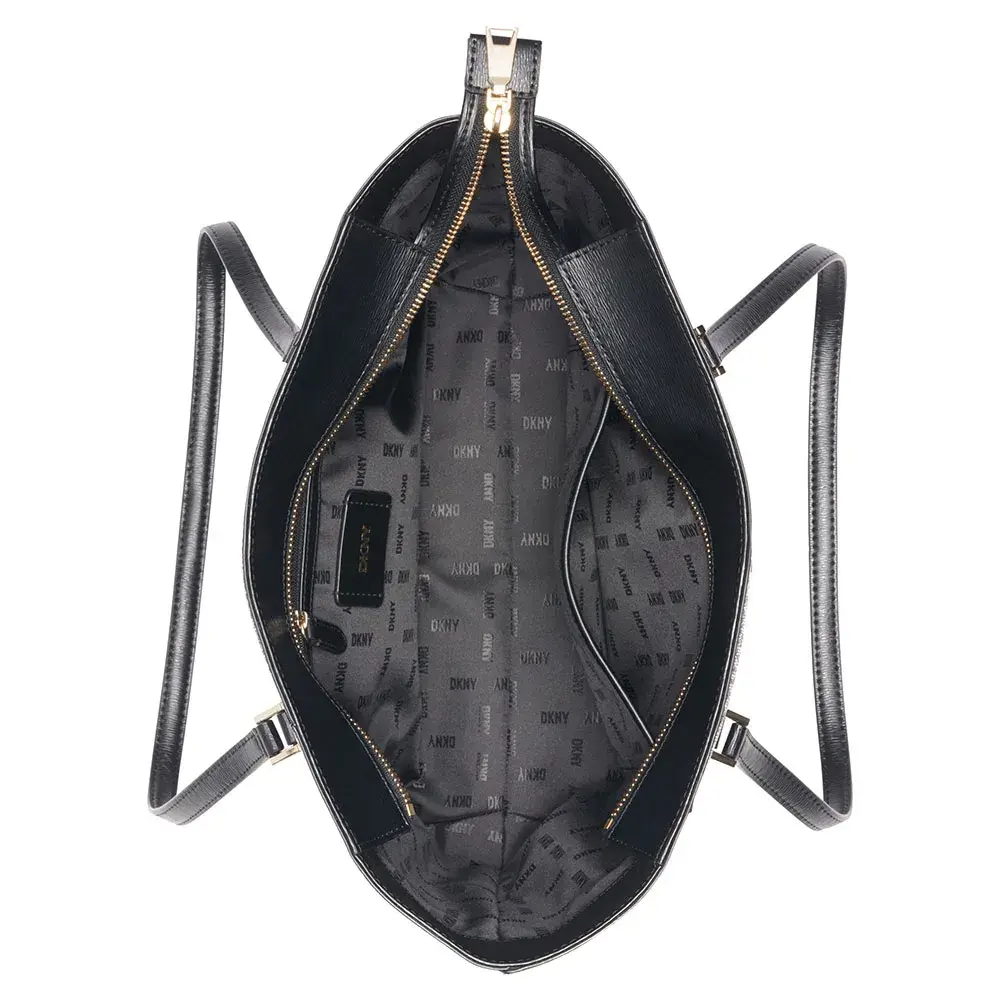* Фурнитура: Полированная, изысканная металлическая фурнитура и фирменная табличка с логотипом DKNY или брелок