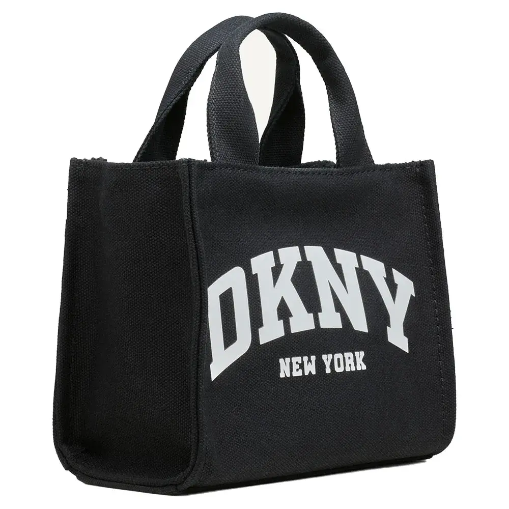 Сумка-тоут DKNY с двойной ручкой, застежкой-молнией, регулируемым и съемным ремешком и логотипом DKNY сбоку.