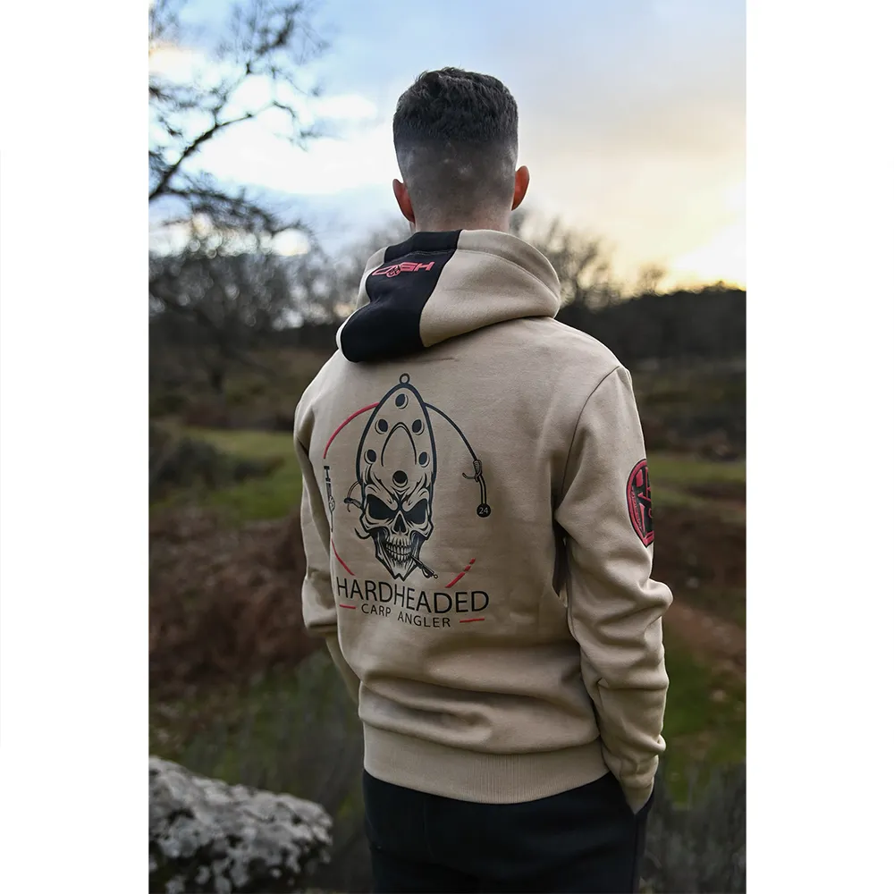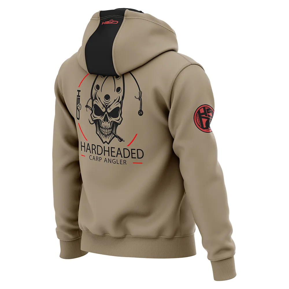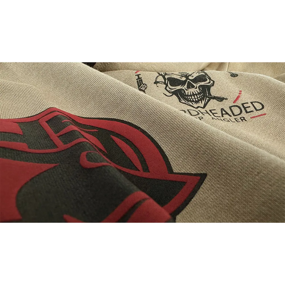 Толстовка Hardheaded отличается особым дизайном, в котором поводок подчеркивает голову рыболова с черепом.