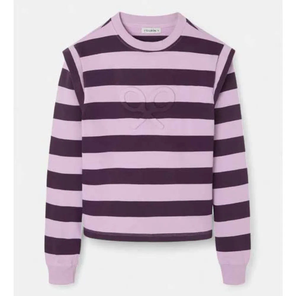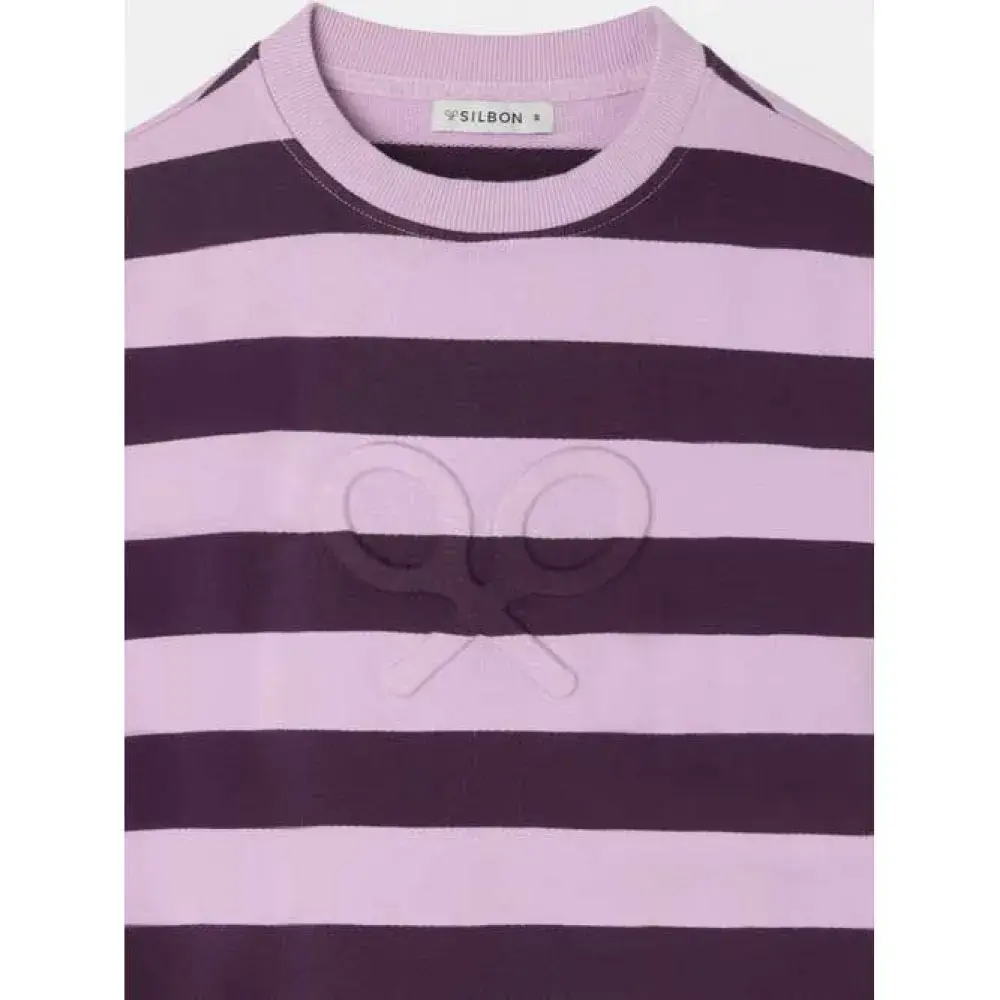 Толстовка в тонкую полоску из 100% хлопка обычного кроя. На груди украшена рельефными ракетками Silbon. Модель с круглым вырезом и длинными рукавами с эластичными манжетами и деталями с эффектом плеч.