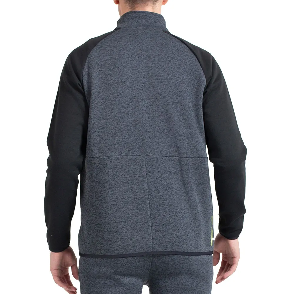 Модель имеет центральную застежку-молнию, прямой воротник, манжеты и низ с эластичной отделкой, боковые карманы на молниях и рисунок trg (намекающий на назначение линии), напечатанный сбоку.