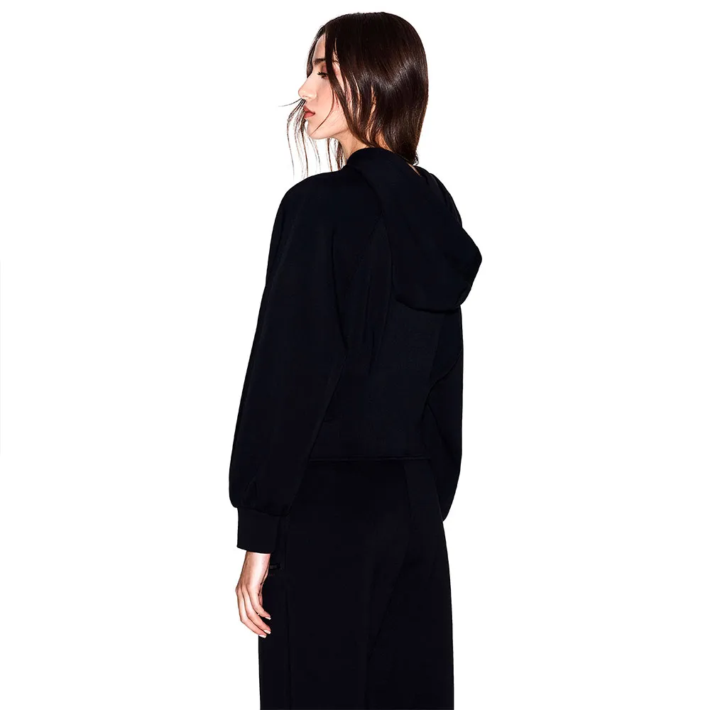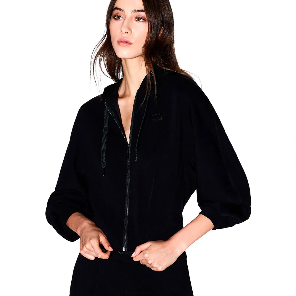Толстовка с капюшоном на молнии, укороченного кроя и эластичным низом.