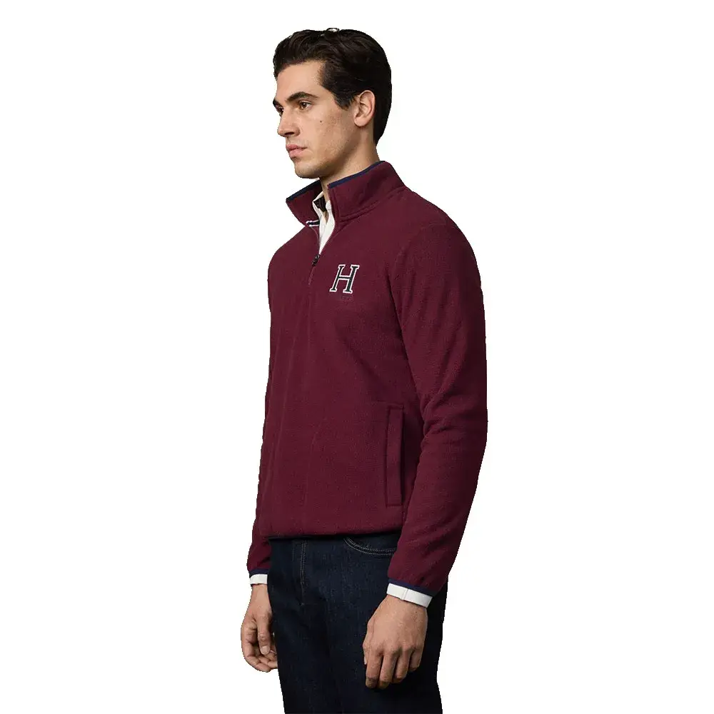 Флисовый фасон с двухцветной вязаной вышивкой h на груди и фирменным рисунком hackett на спине.