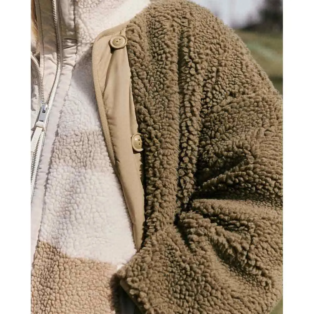 Эта двусторонняя куртка sherpa сочетает в себе два одинаково крутых стиля. С одной стороны, маленькая куртка sherpa с пуговицами и контрастной планкой на пуговицах, с другой - элегантная стеганая куртка. 2 в 1 - выбор за вами.