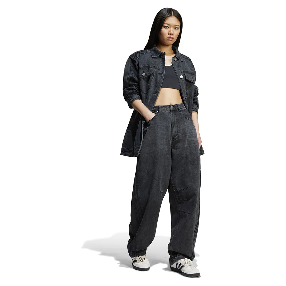 Джинсовый материал создает основу для создания винтажного образа, который затем подчеркивается объемным кроем.