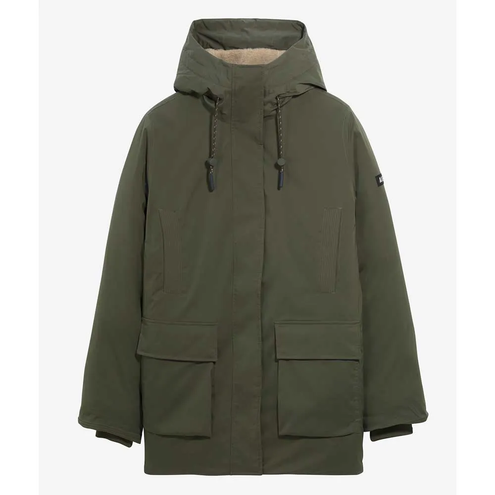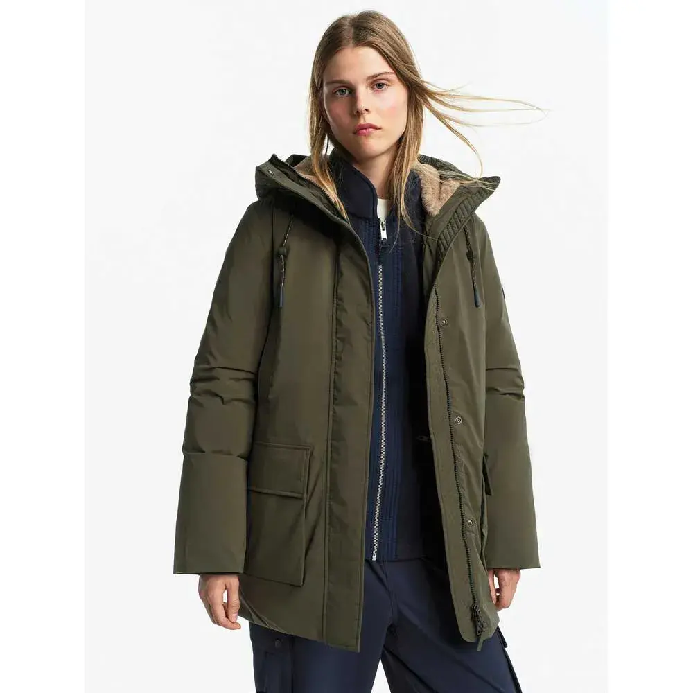 Эта парка MTD средней длины с капюшоном на подкладке из шерп, шестью наружными карманами, двойной передней молнией с кнопками, наполнителем из переработанного волокна и регулируемой внутренней талией—сочетает в себе комфорт, тепло и практичность для всех ваших приключений.