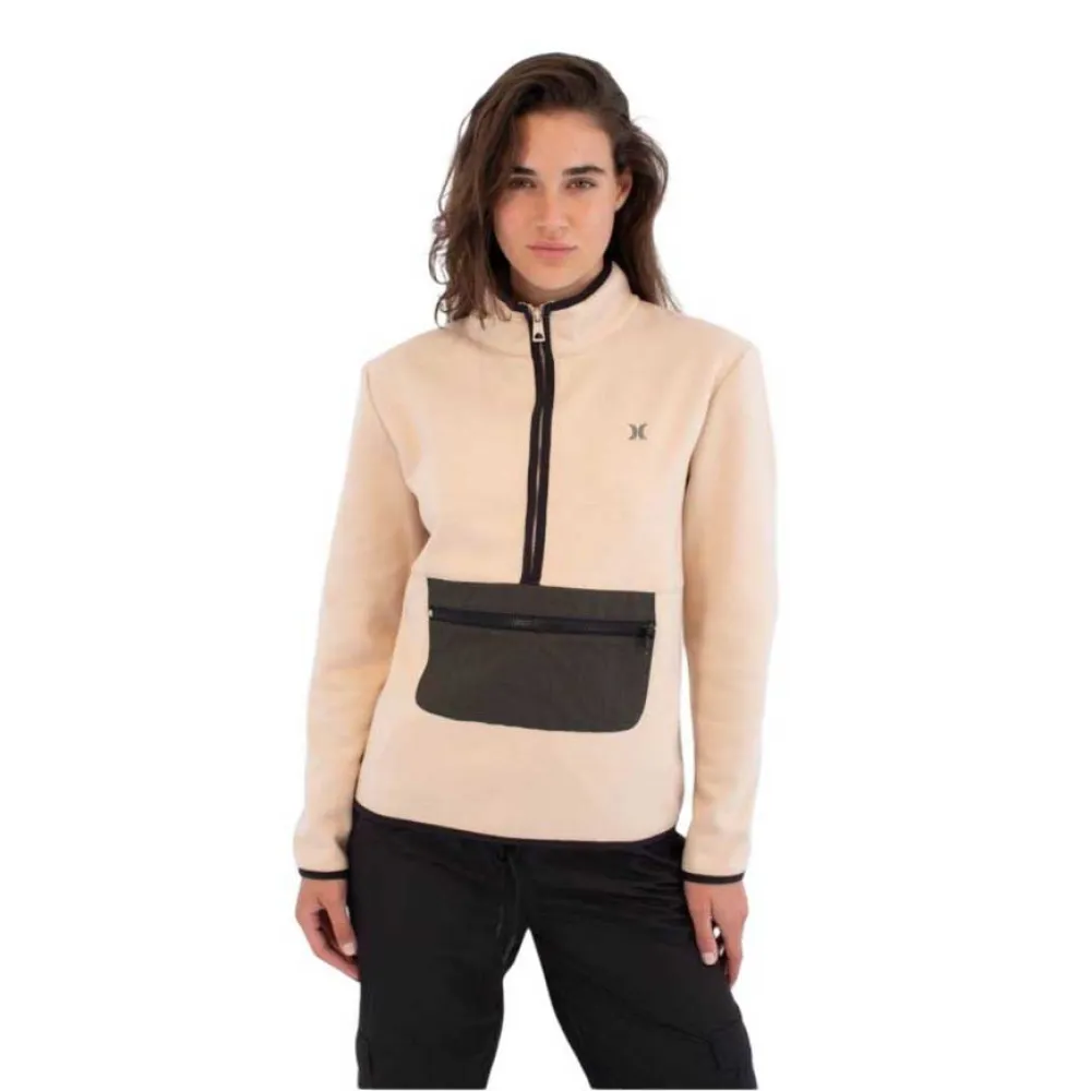 Эта толстовка с флисовой подкладкой обеспечивает тепло и комфорт благодаря функциональному крою. Модель застегивается на молнию 1/4 для удобства надевания и имеет передний карман на молнии для хранения предметов первой необходимости. Модель с вышитым логотипом Hurley на груди отлично подойдет для прохладных дней и повседневных прогулок.