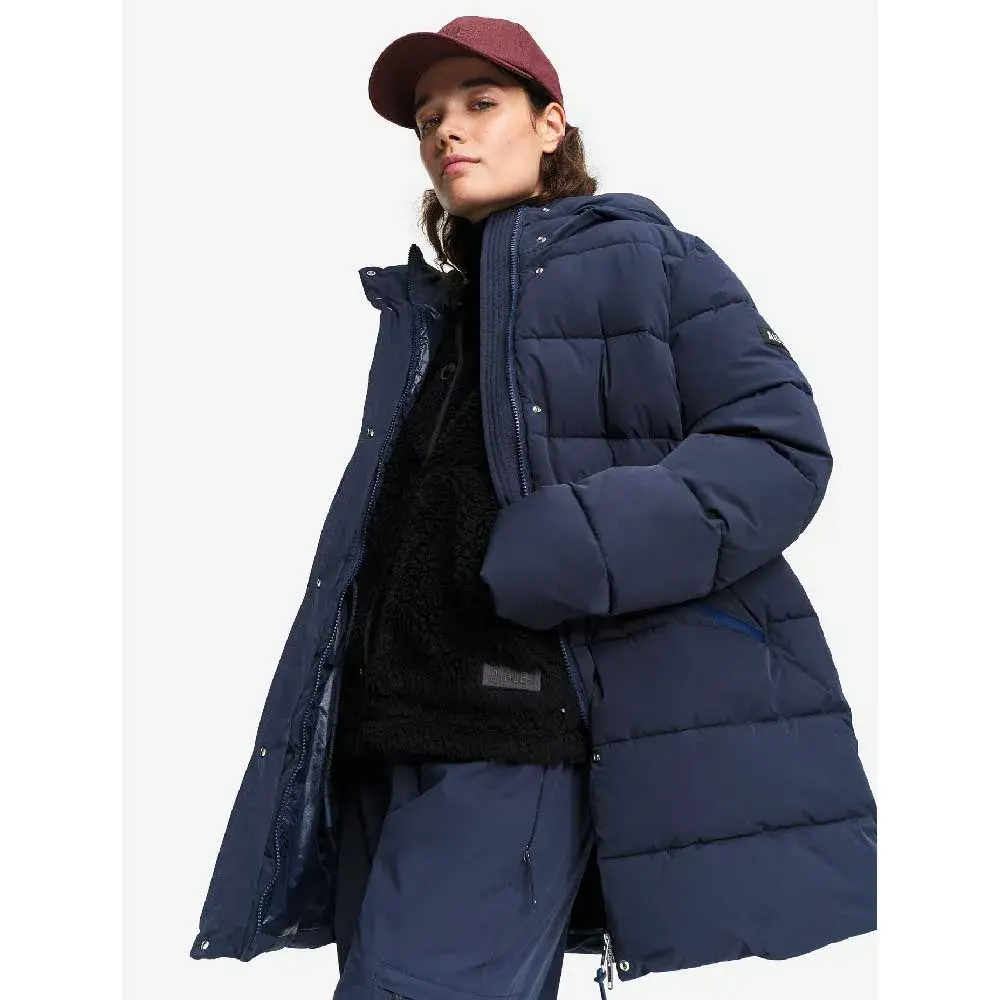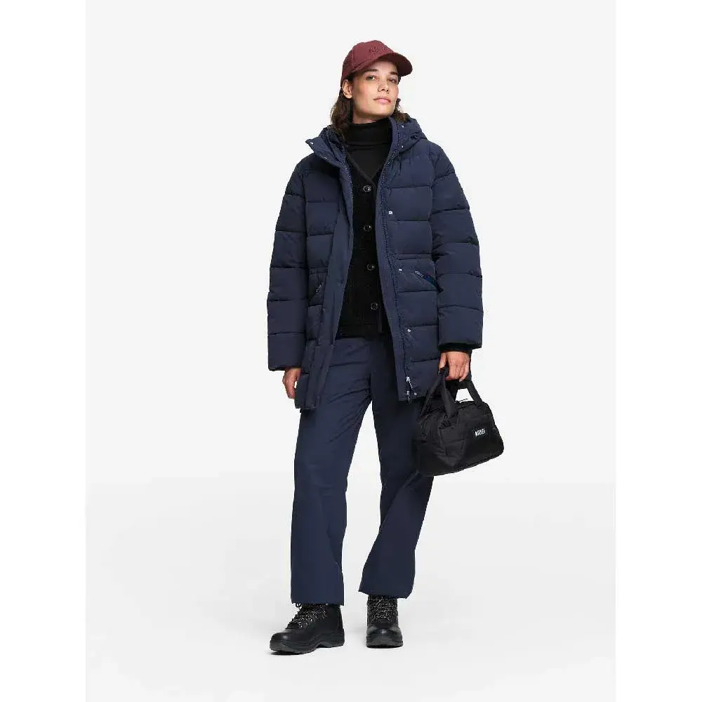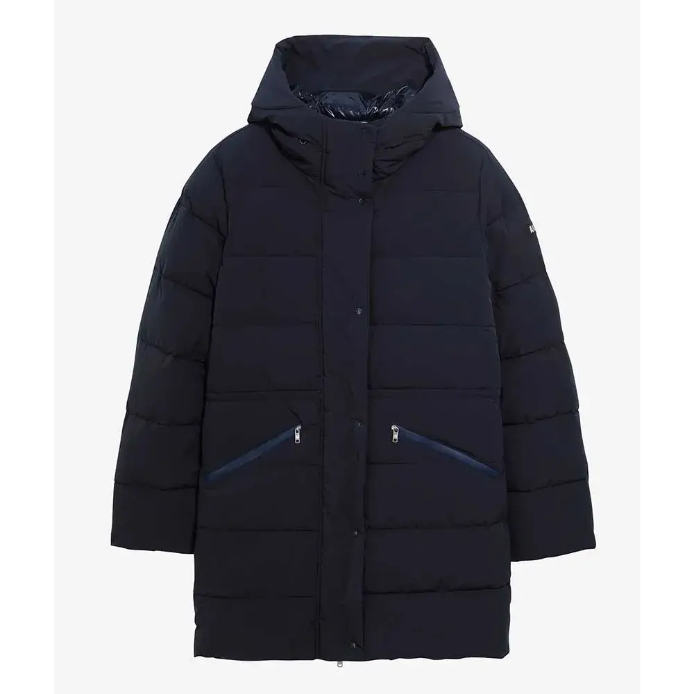 Эта ультра-теплая пуховая куртка средней длины с переработанным утеплителем имеет прикрепленный регулируемый капюшон, глянцевую отделку и регулируемую внутреннюю талию. Водонепроницаемая, теплая и удобная - городской must-have сезона в элегантном дизайне средней длины.