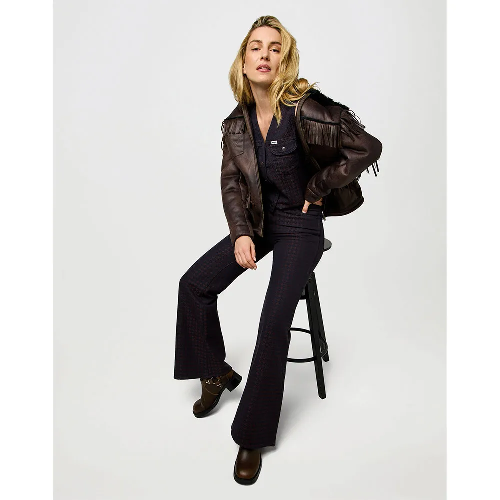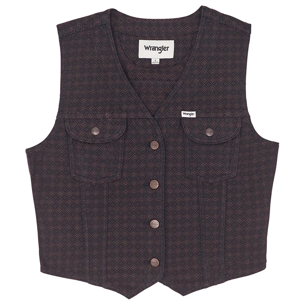 Особенности включают два нагрудных кармана с клапанами - один с тканым лейблом Wrangler и на пуговицах спереди.